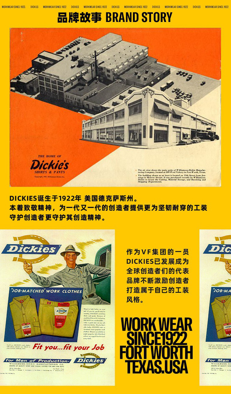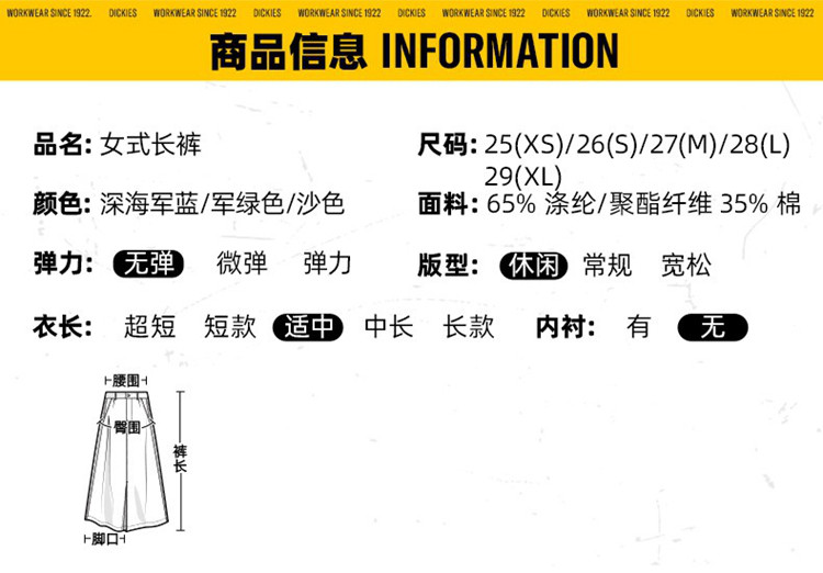 商品名称:Dickies春夏裤子女工装阔腿休闲裤 DK010192 129488