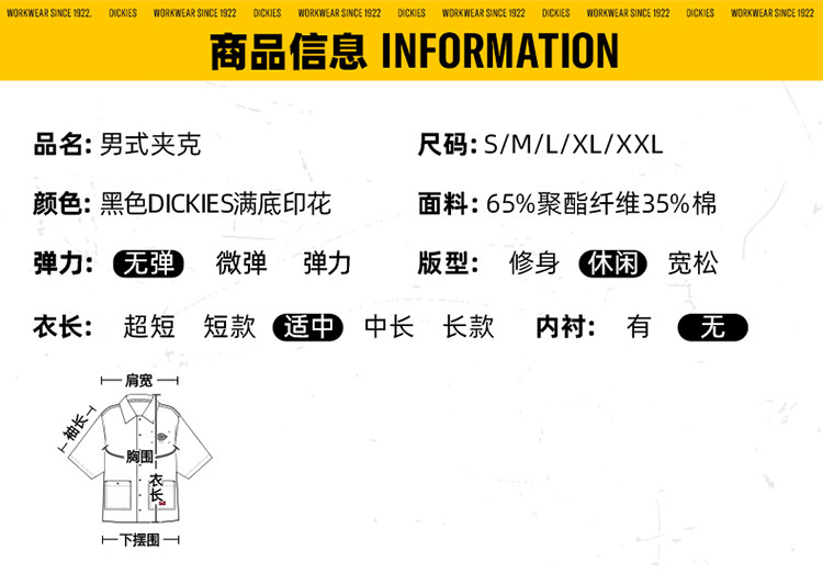 商品名称:Dickies个性双面可穿上衣易穿搭男夹克 DK010203 894224