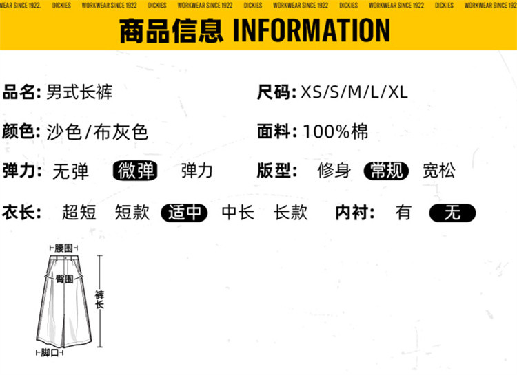 商品名称:Dickies男士纯棉宽松舒适时尚裤子 DK010171 994128