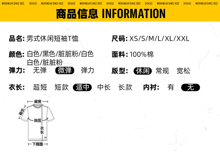 商品名称:Dickies男女款春夏季宽松休闲短袖T恤 DK010559 118160