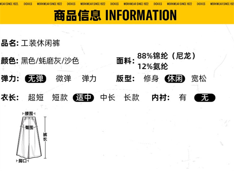 商品名称:Dickies男式春秋季多口袋休闲束脚长裤 DK011003 695120