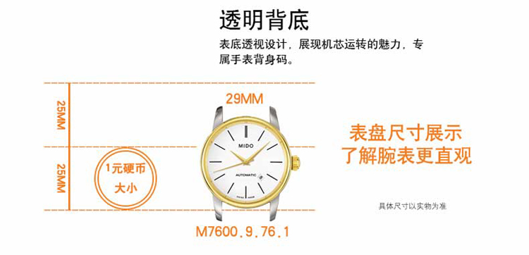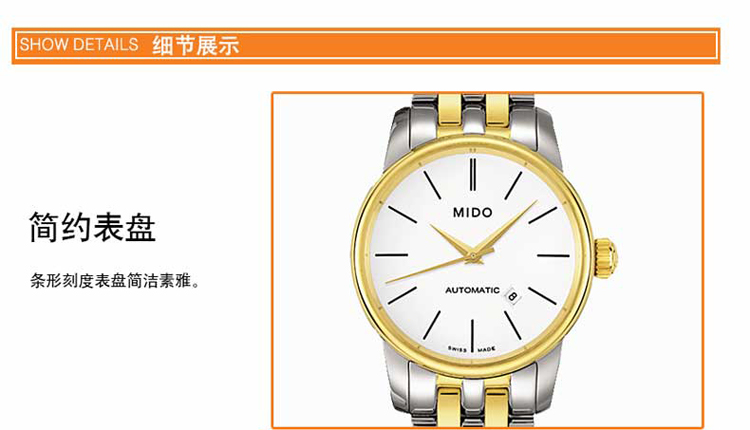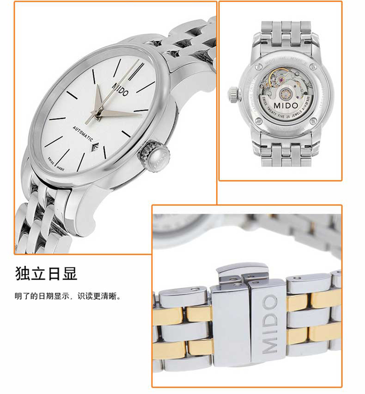 商品名称:MIDO美度 贝伦赛丽系列自动机械日历显示手表 白盘钢带女表 (不支持无理由退换货)