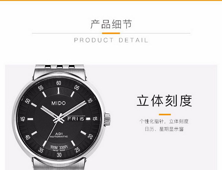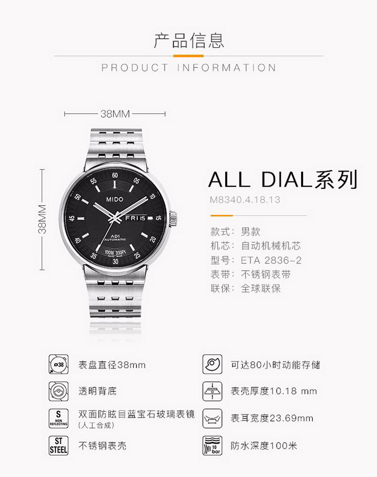商品名称:MIDO美度 ALL DIAL 完美系列机械钢带男表 (不支持无理由退换货)