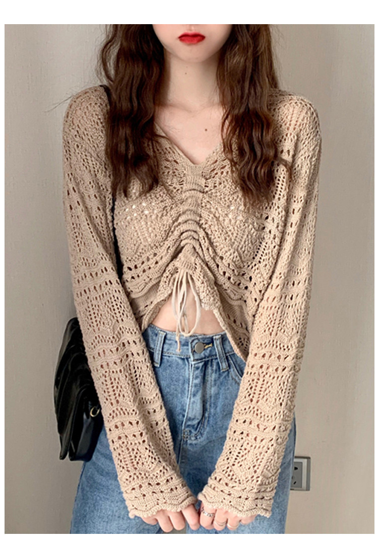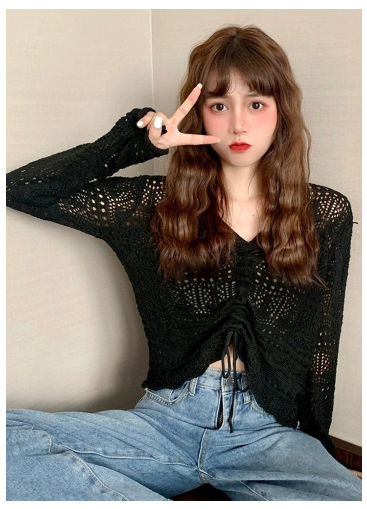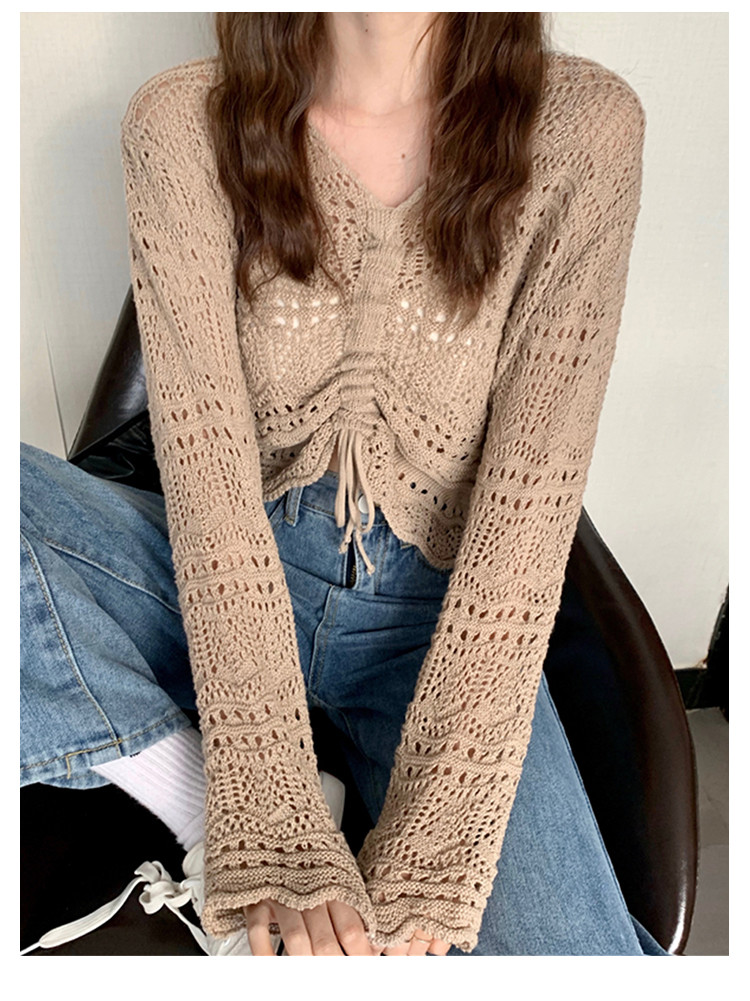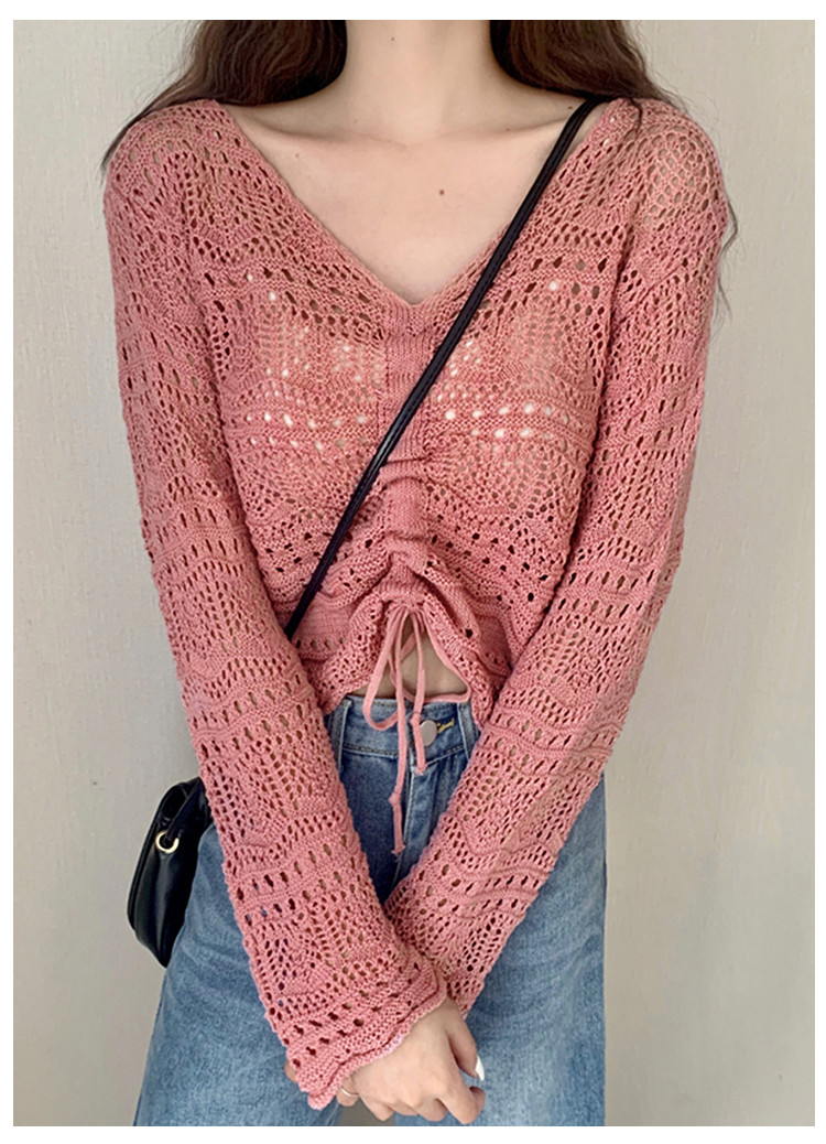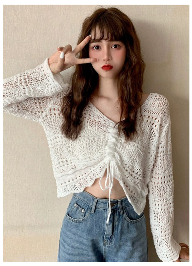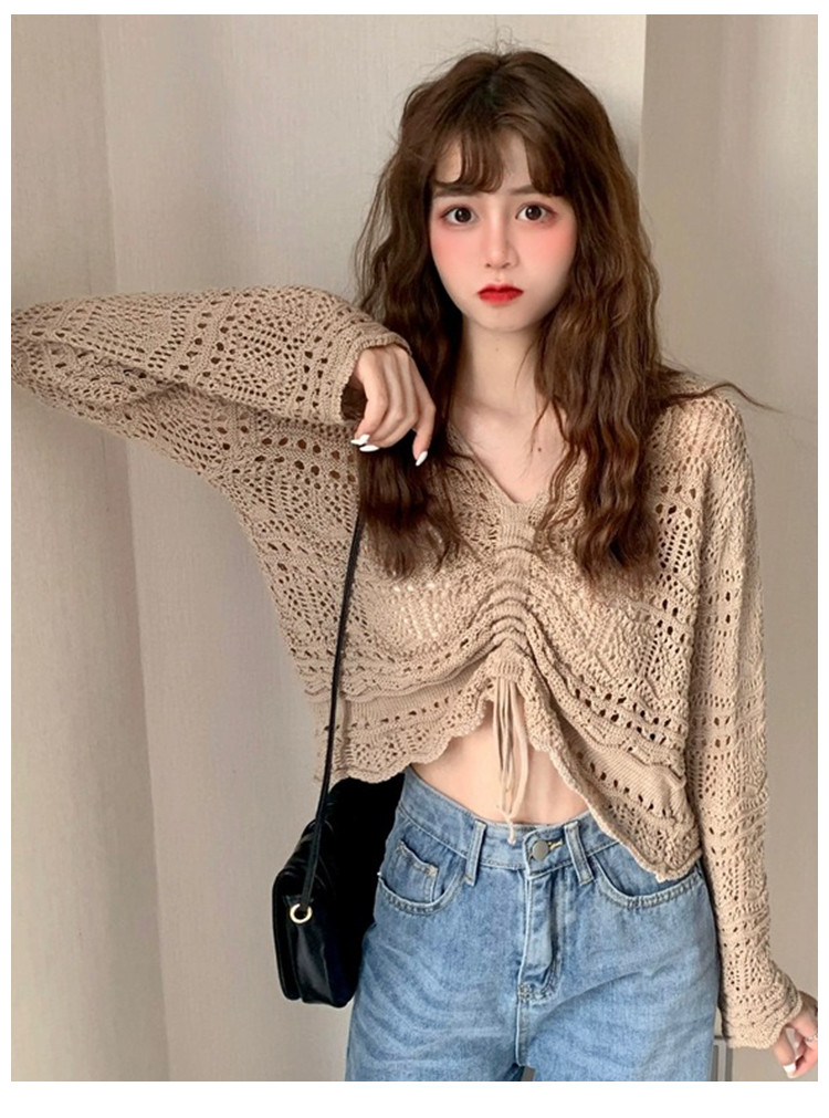 V领气质空调衫宽松针织衫抽绳百搭显瘦针织上衣女 986179