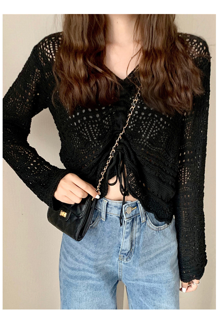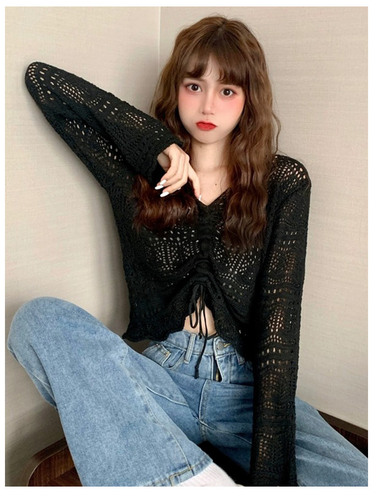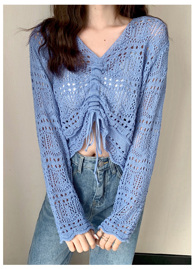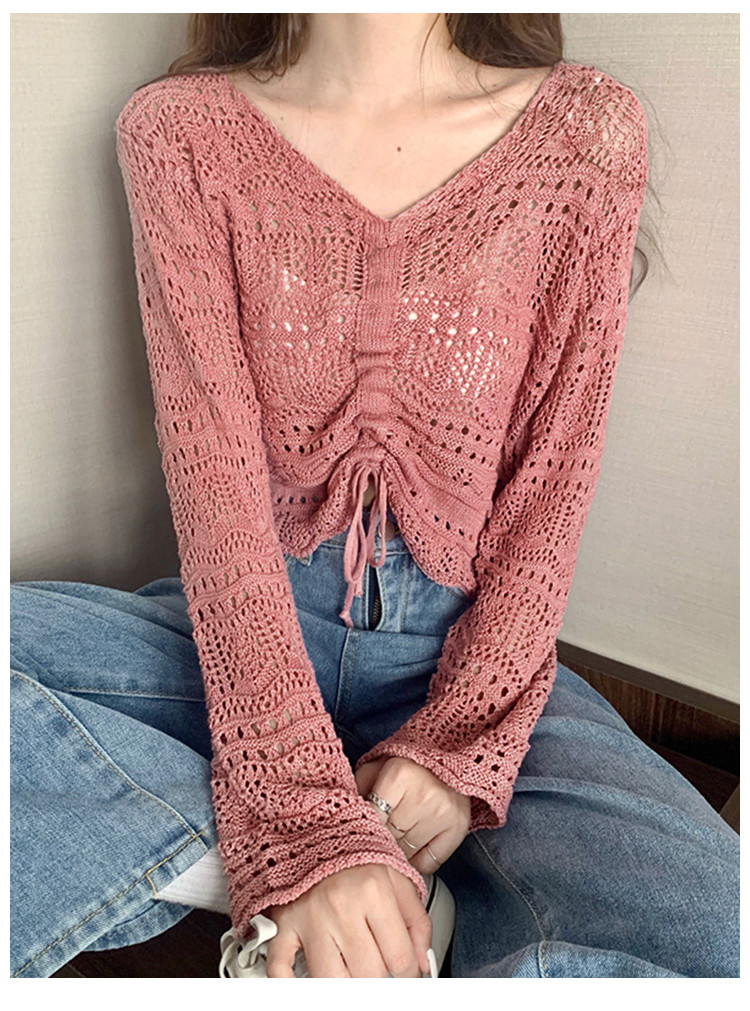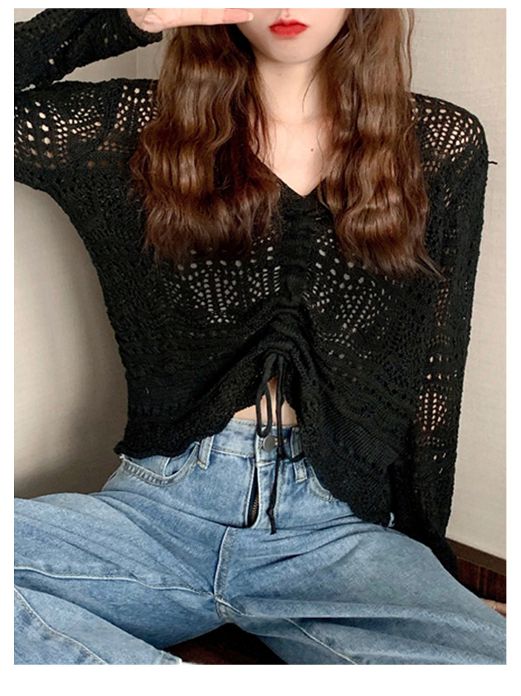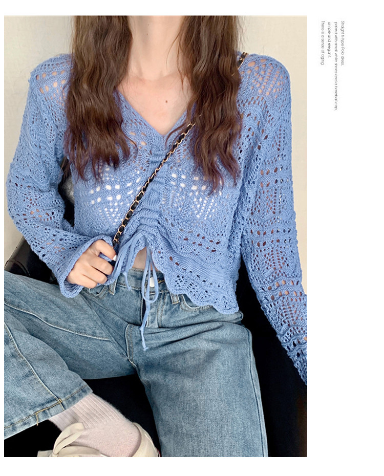 V领气质空调衫宽松针织衫抽绳百搭显瘦针织上衣女 986179