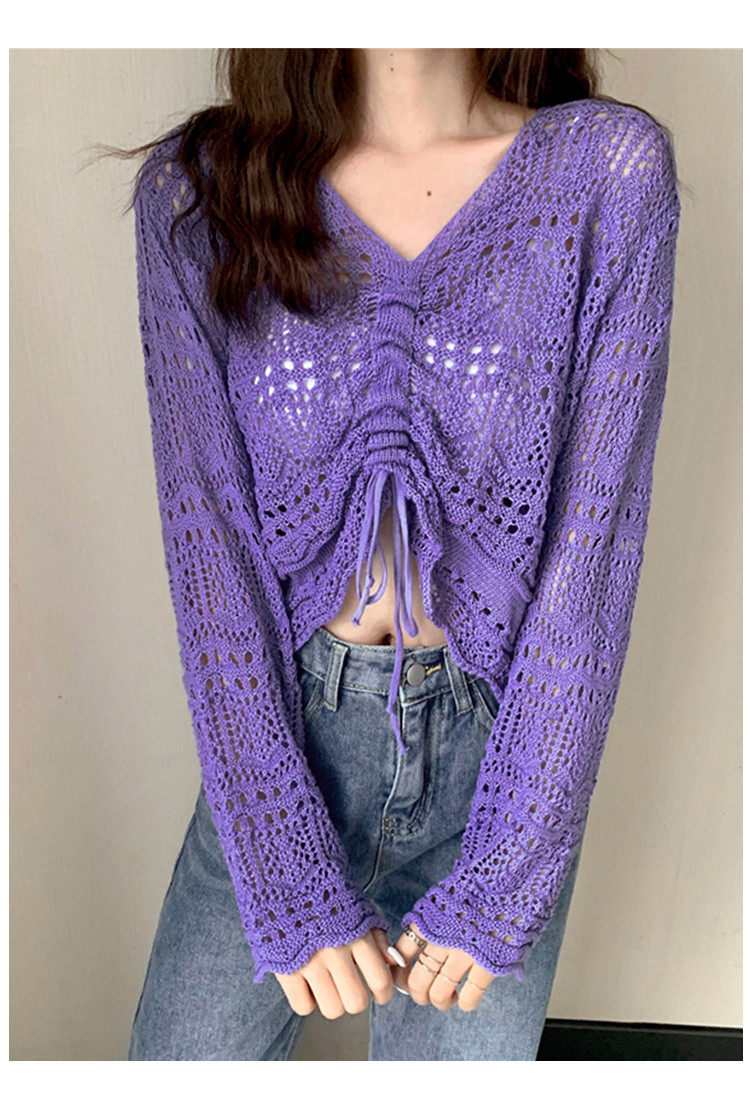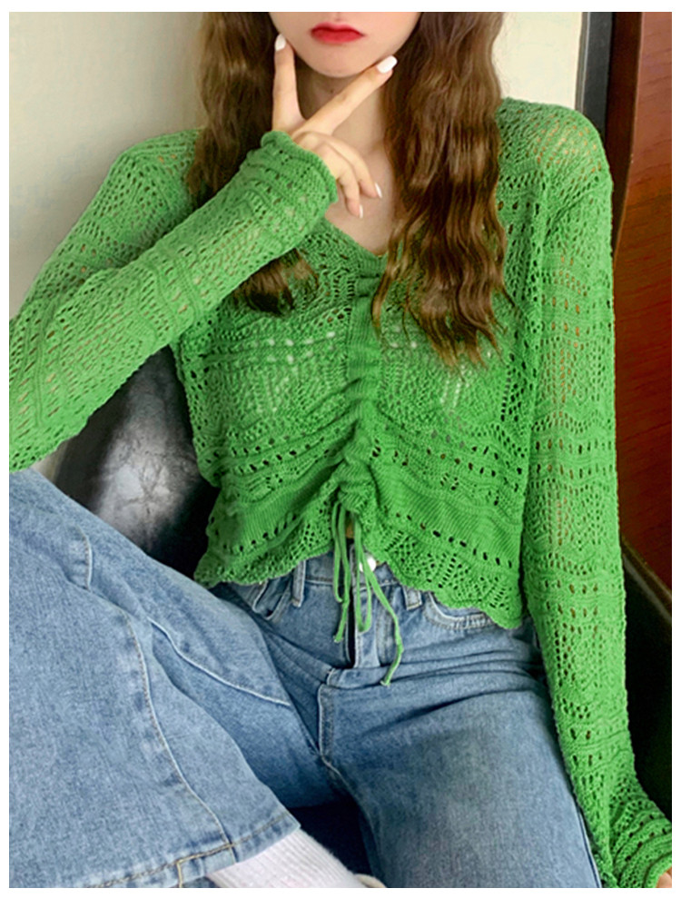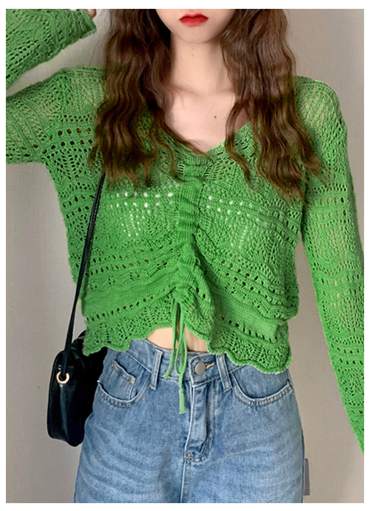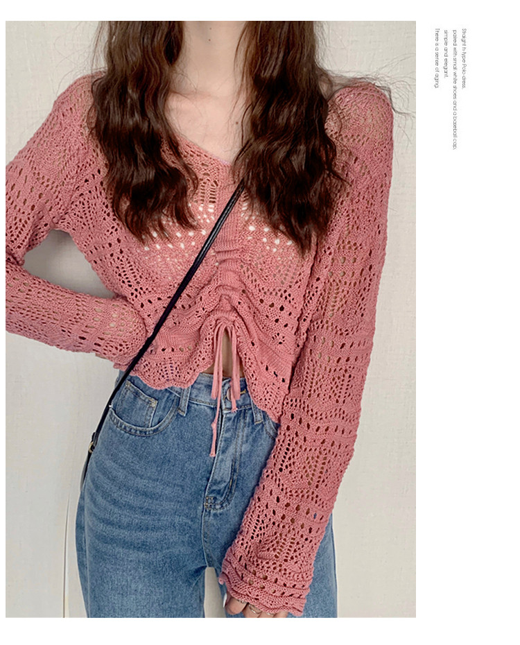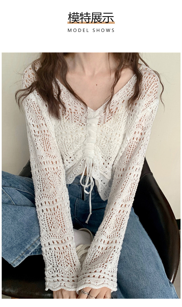 V领气质空调衫宽松针织衫抽绳百搭显瘦针织上衣女 986179