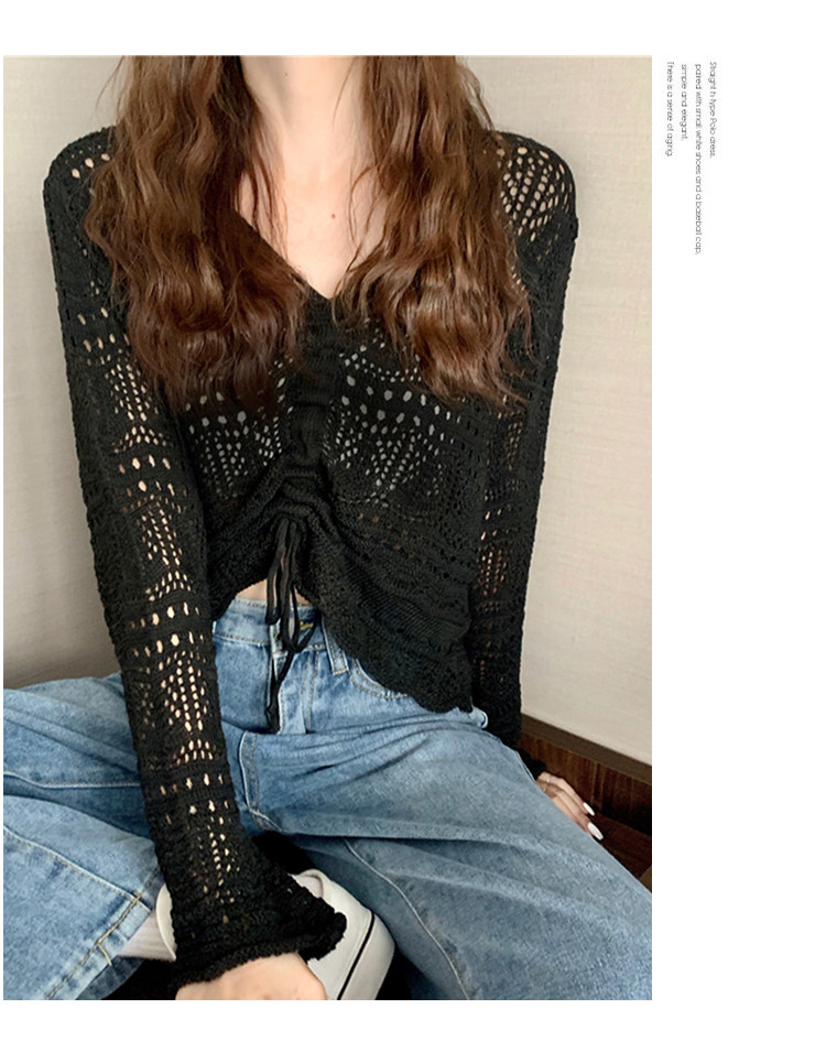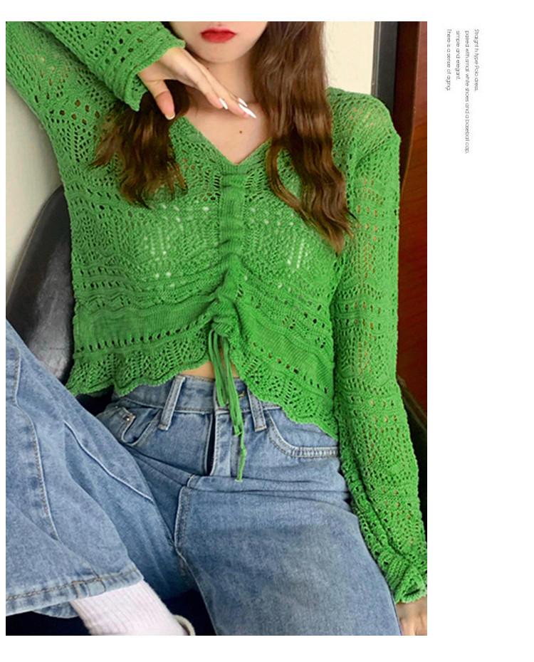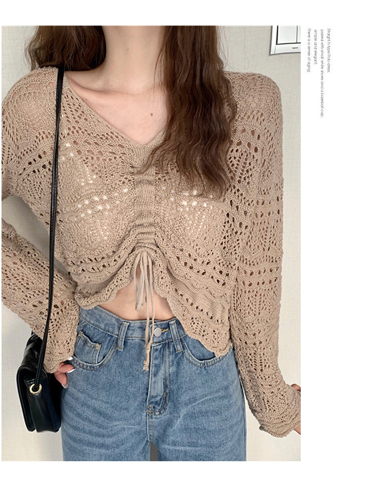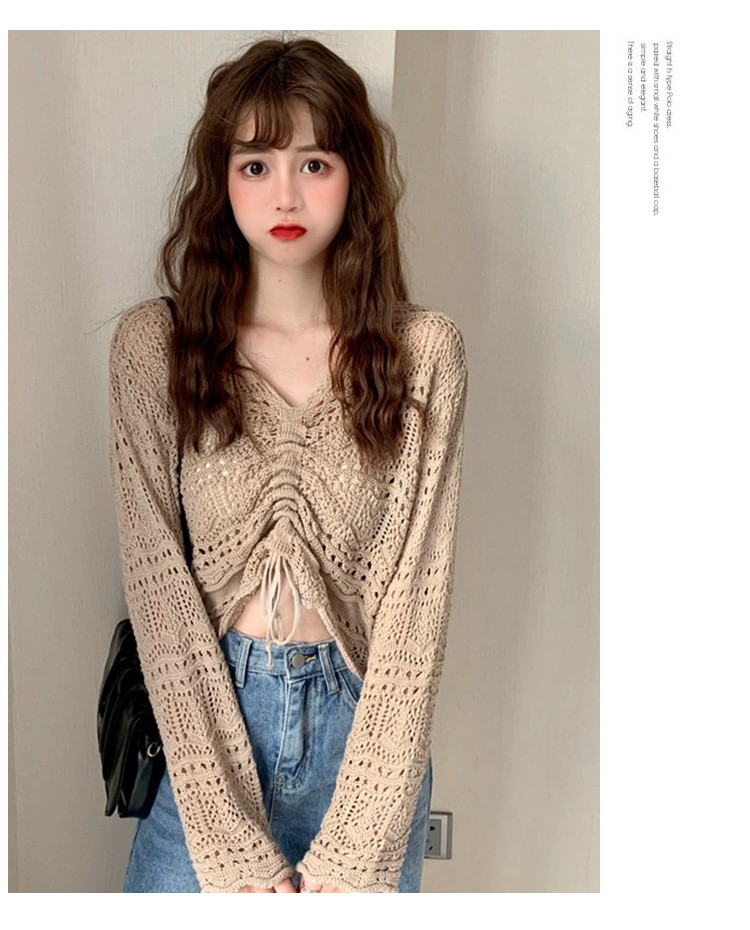 商品名称:V领气质空调衫宽松针织衫抽绳百搭显瘦针织上衣女 986179
