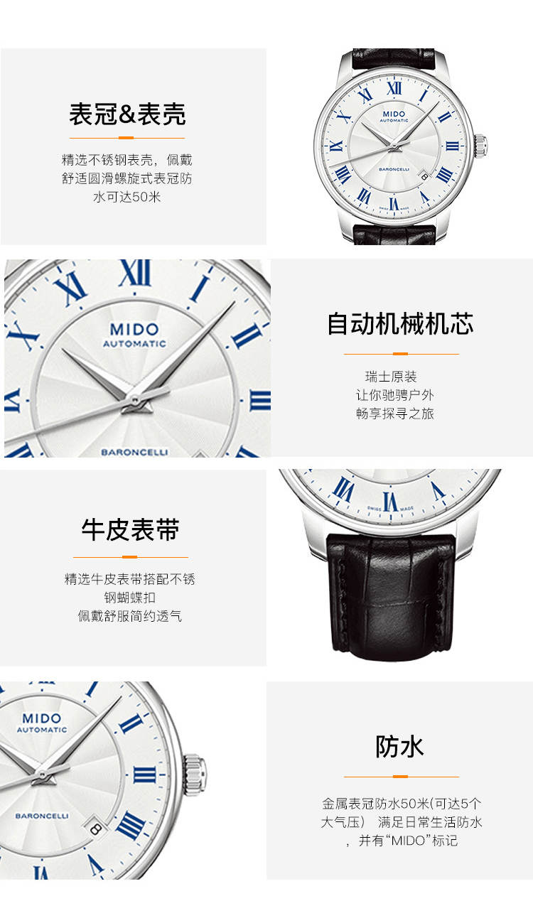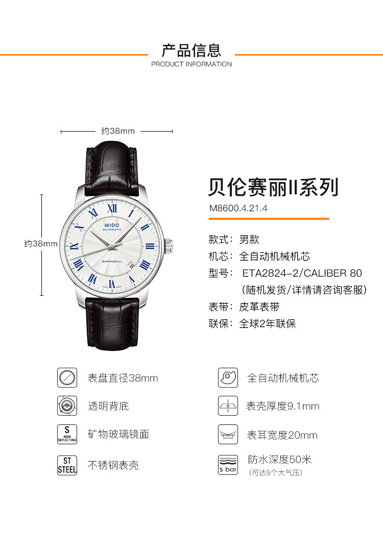 商品名称:MIDO美度 贝伦赛丽系列真皮机械男表(不支持无理由退换货)