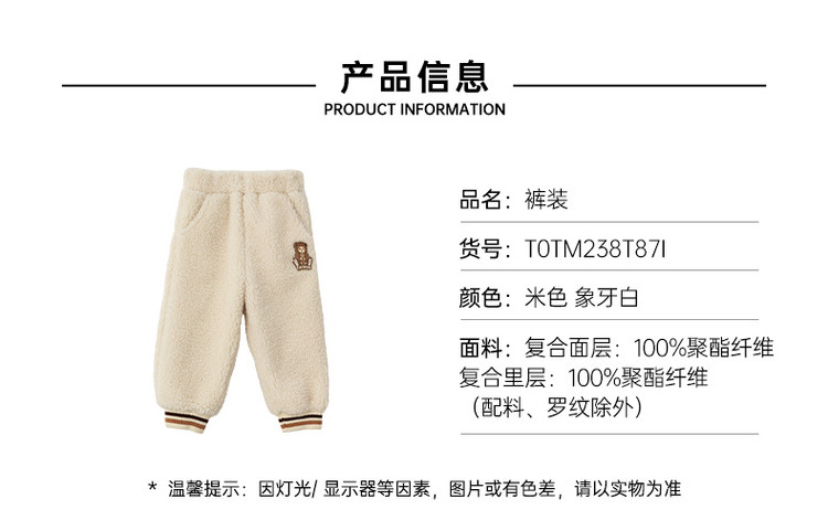 商品名称:小熊童装春季男女宝宝仿羊羔绒运动裤 171393