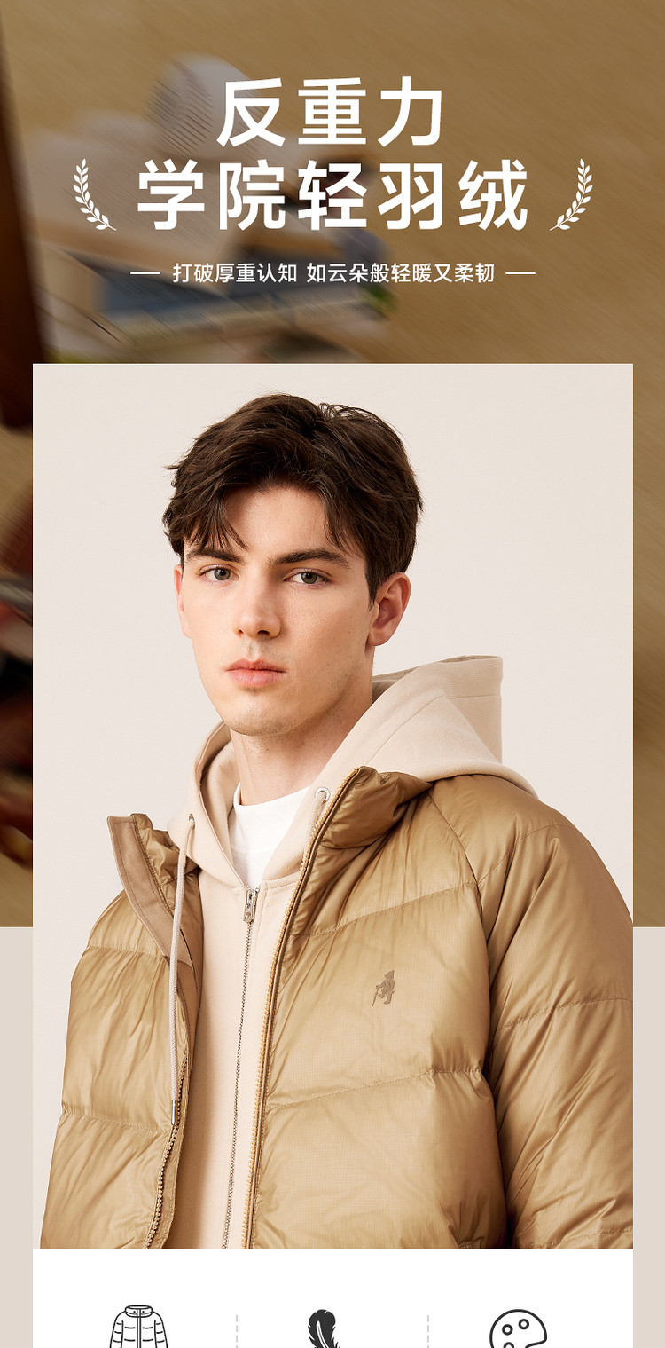 商品名称:【鹅绒】羽绒服男冬季学院风立领短款羽绒服保暖外套男 447617