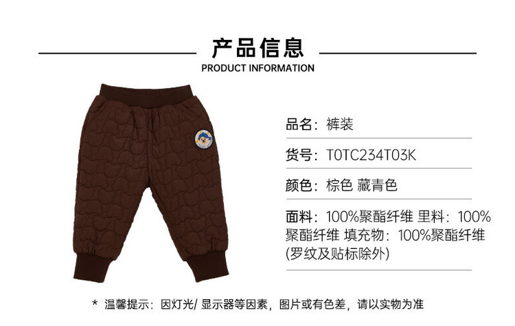 商品名称:小熊童装冬季男宝宝休闲束脚长裤运动裤 792513