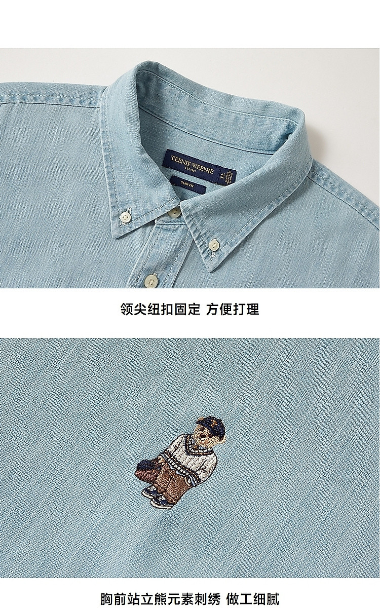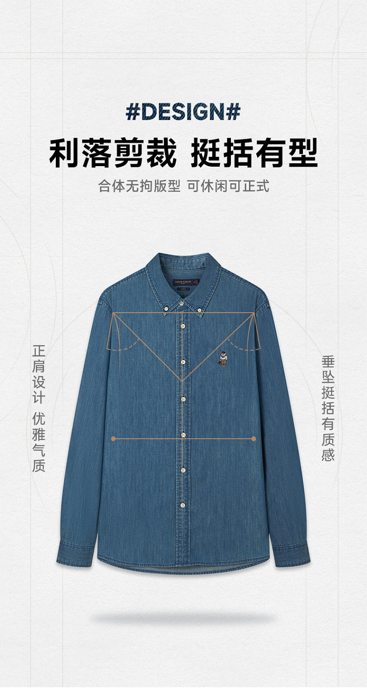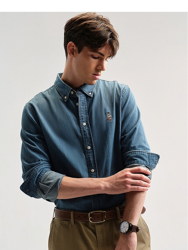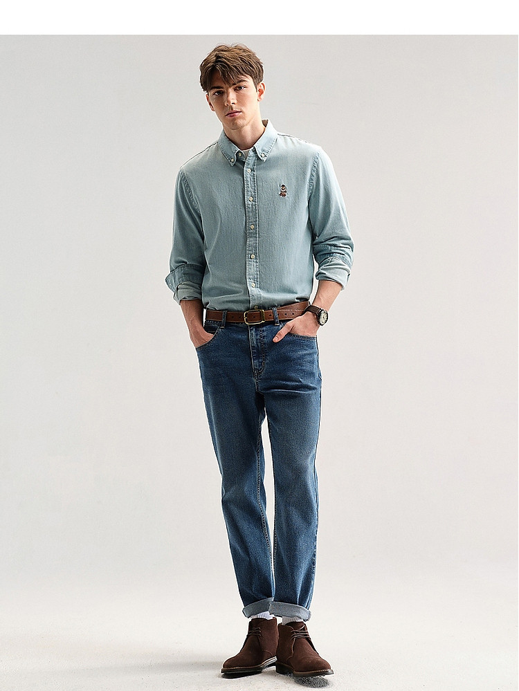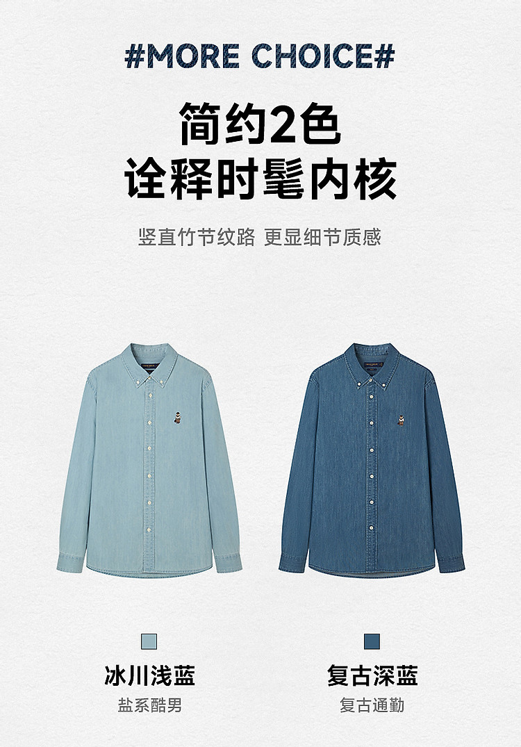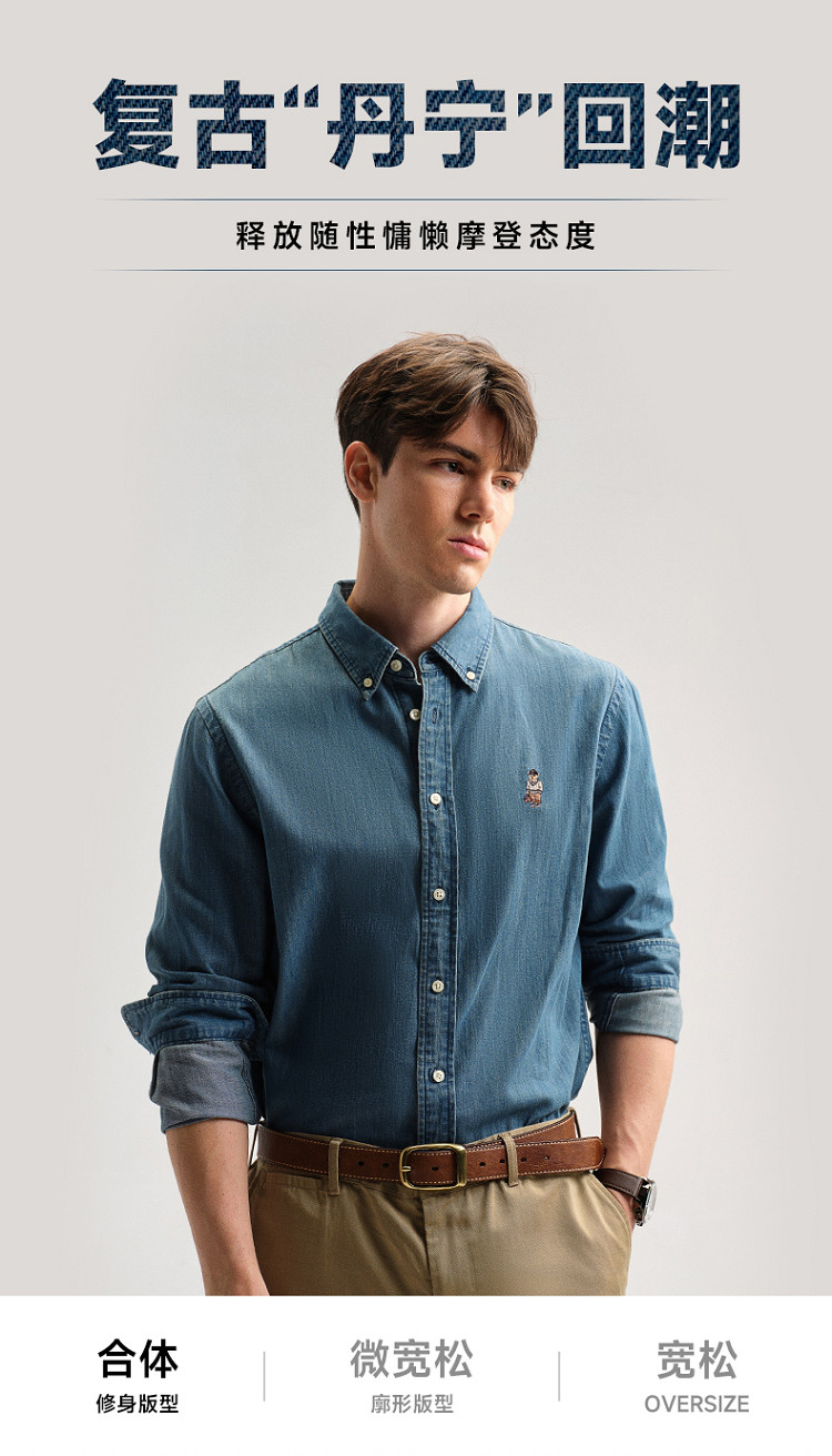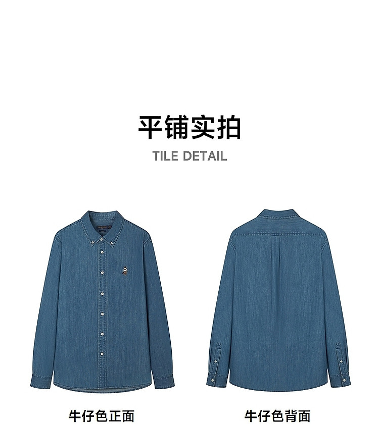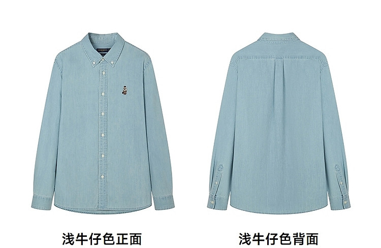 商品名称:小熊男装简约时尚潮流牛仔衬衫春季休闲美式复古宽松情侣衬衣 276737
