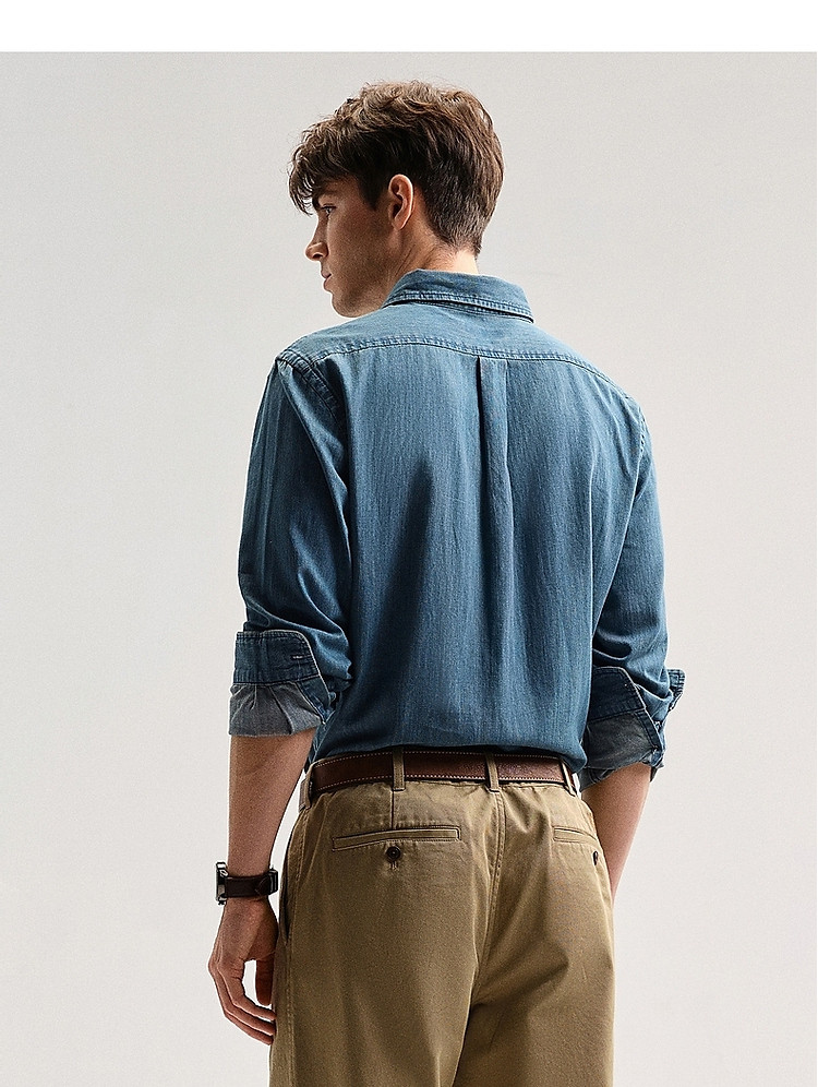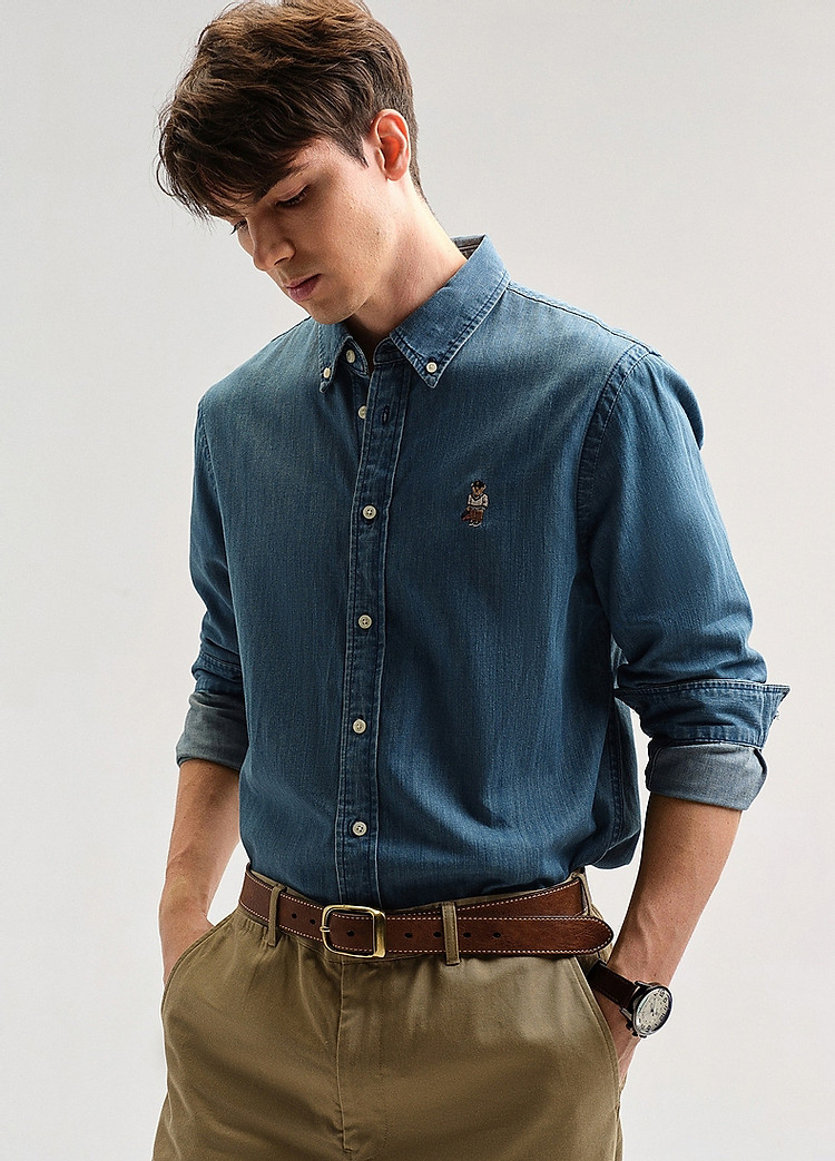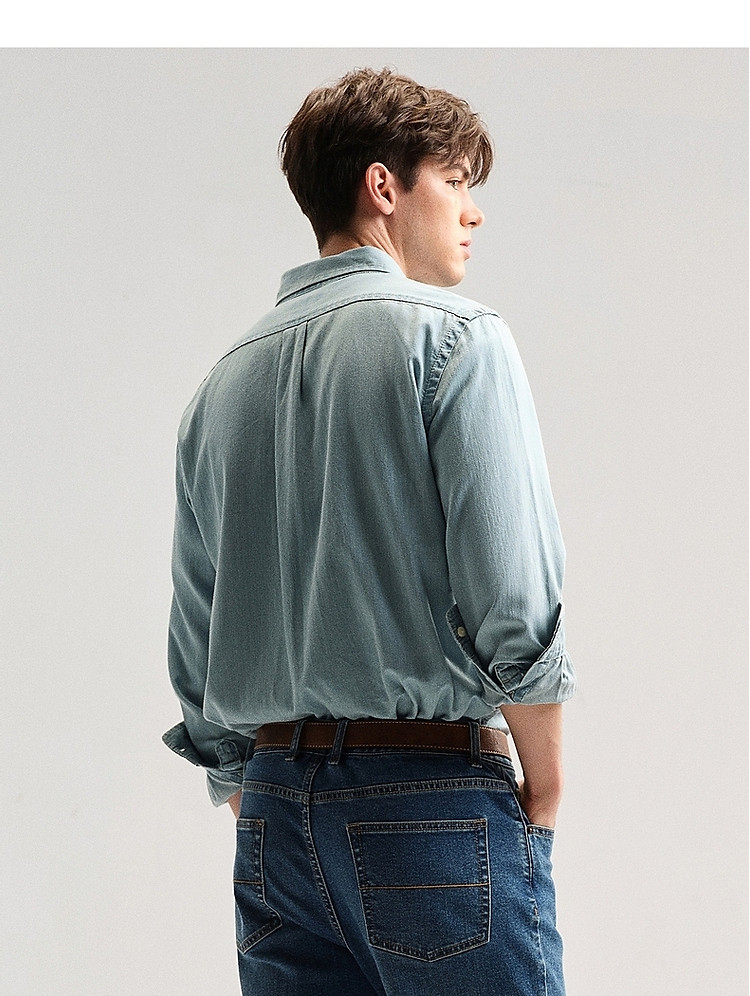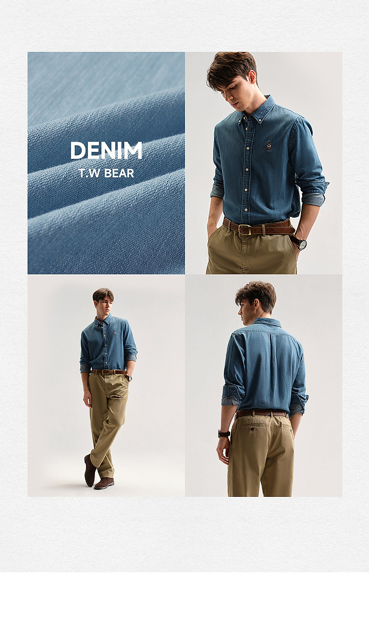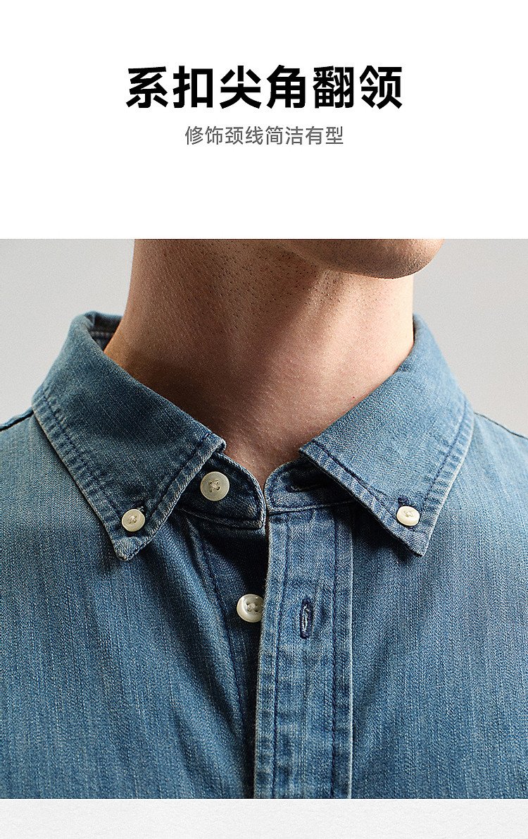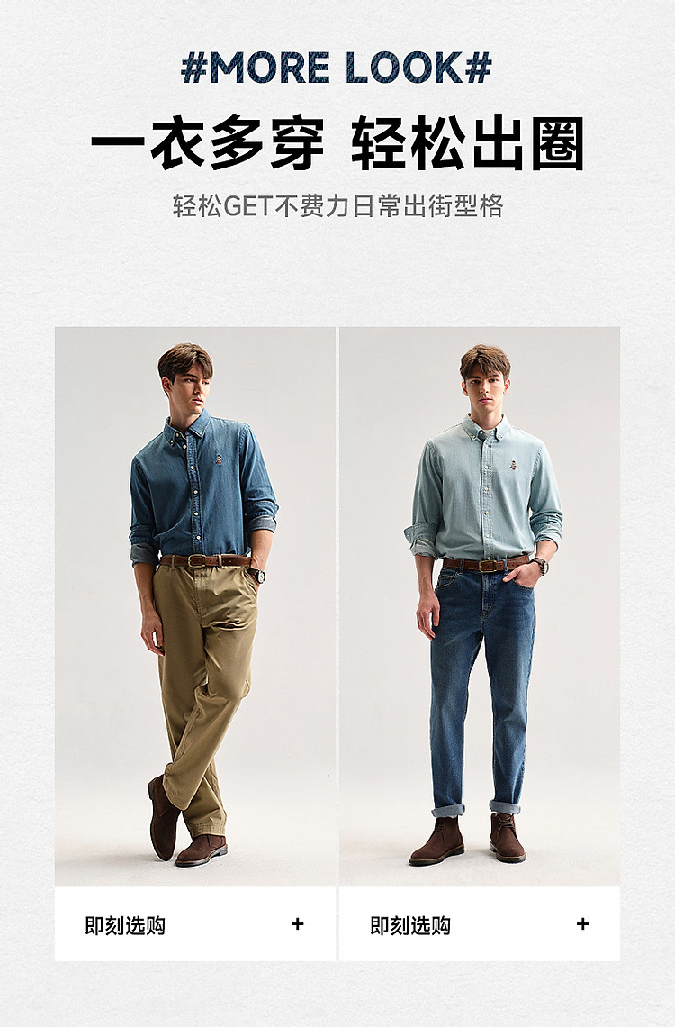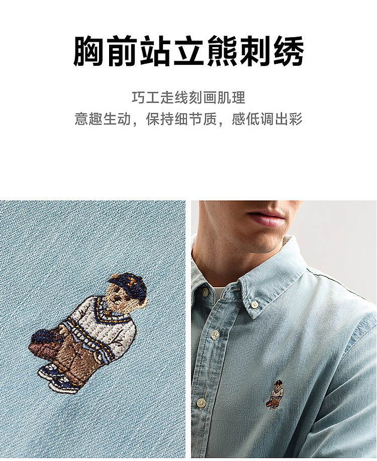 商品名称:小熊男装简约时尚潮流牛仔衬衫春季休闲美式复古宽松情侣衬衣 276737