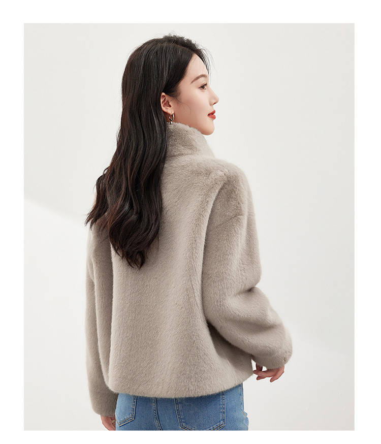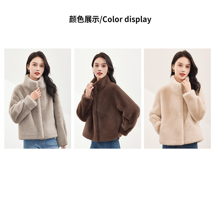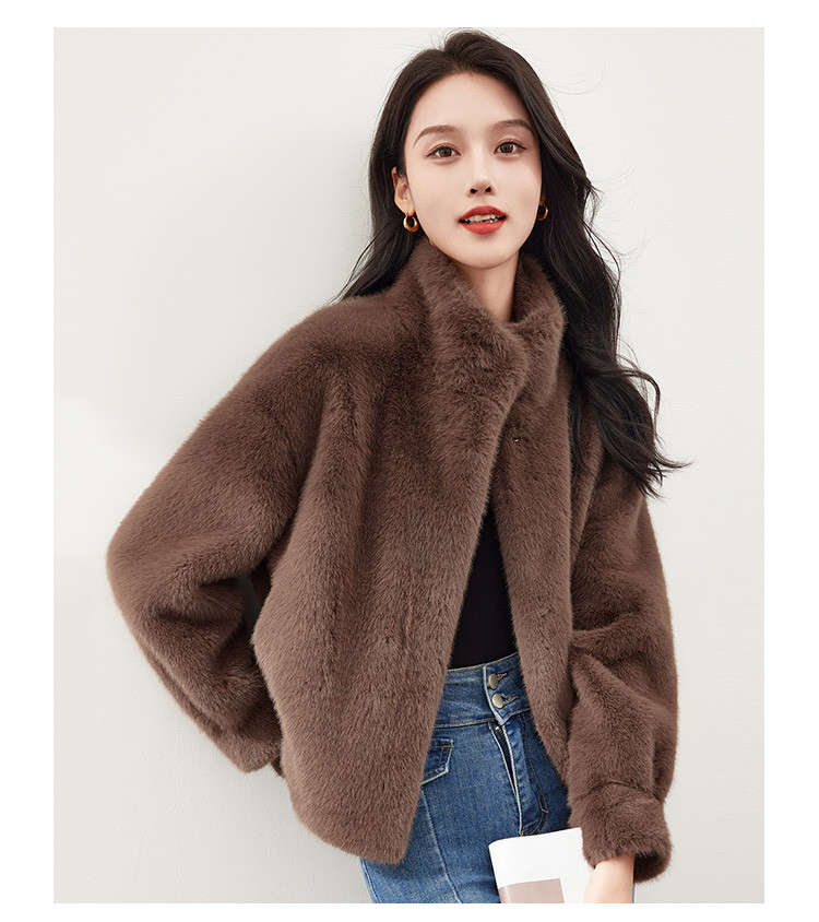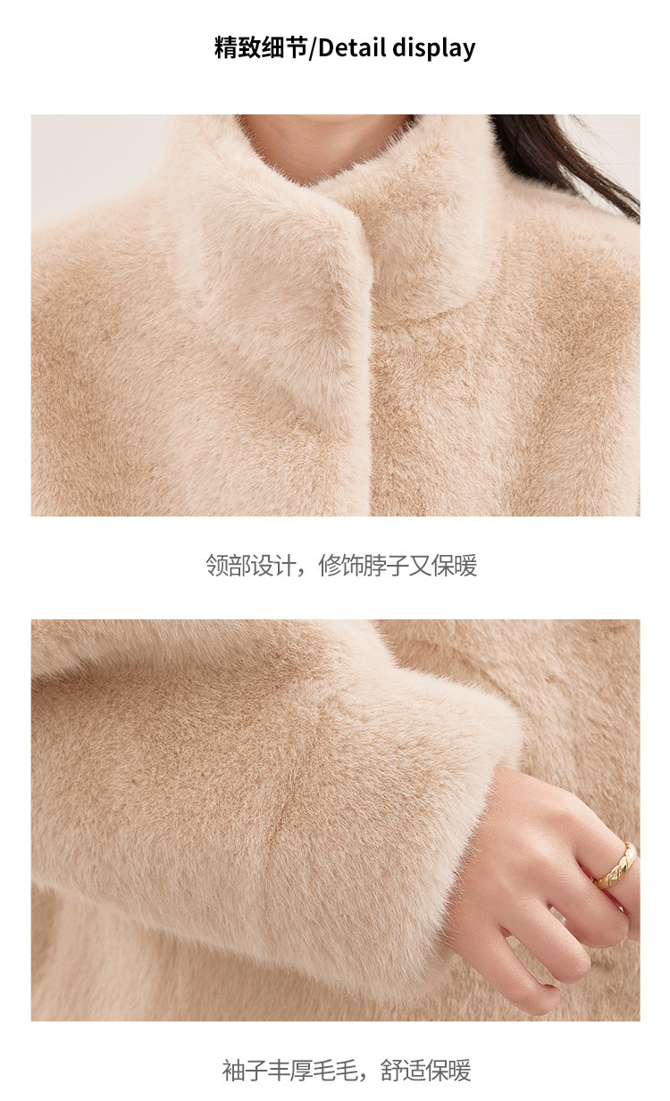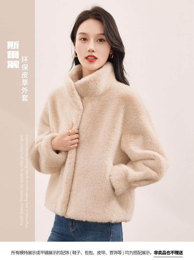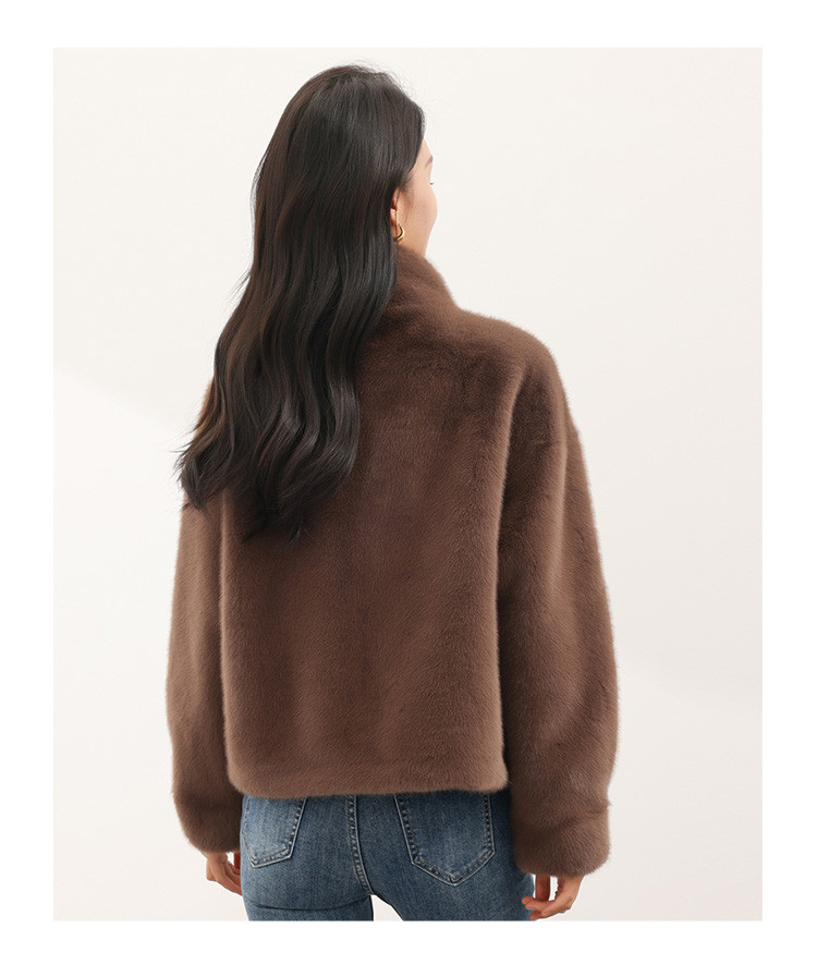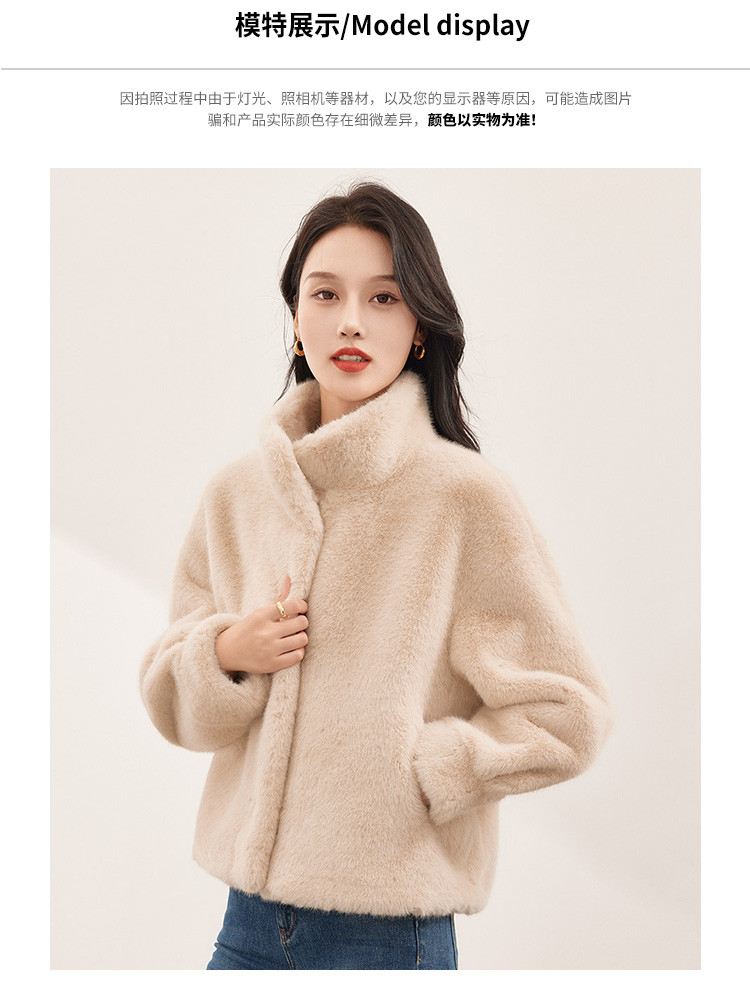 商品名称:冬季小个子保暖仿貂绒环保皮草女式时尚休闲短款立领仿皮草外套 783519