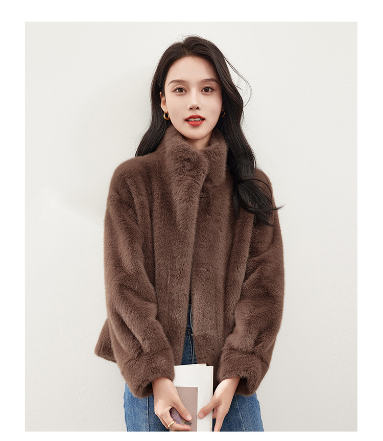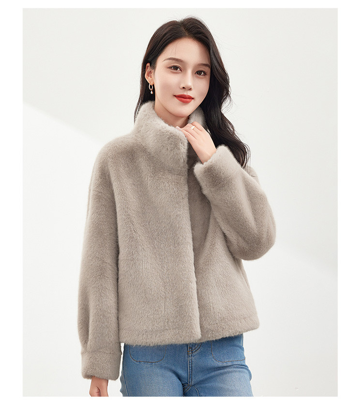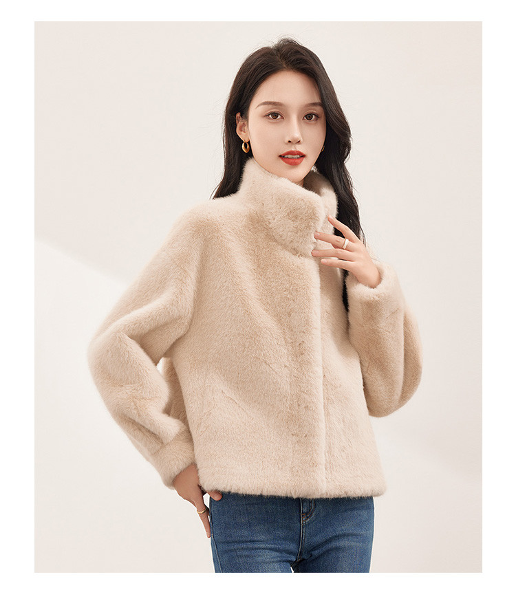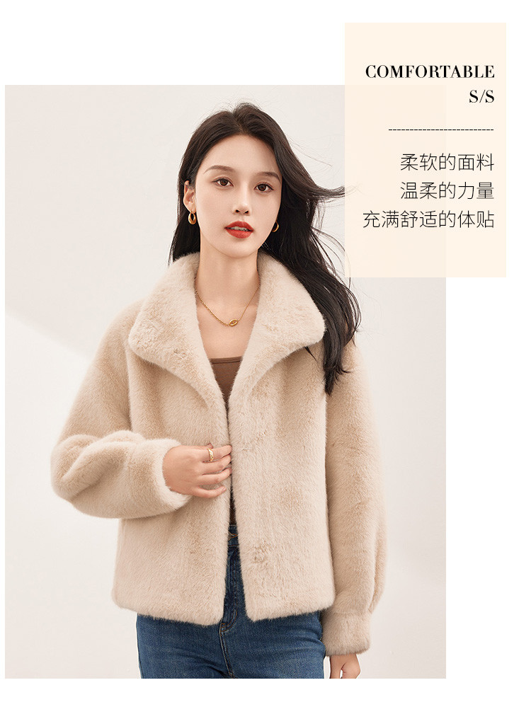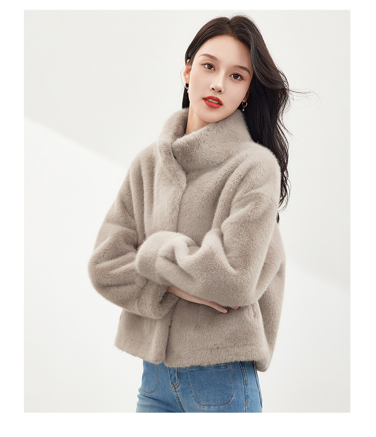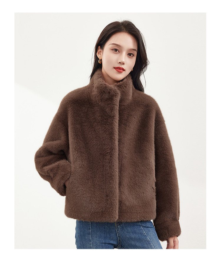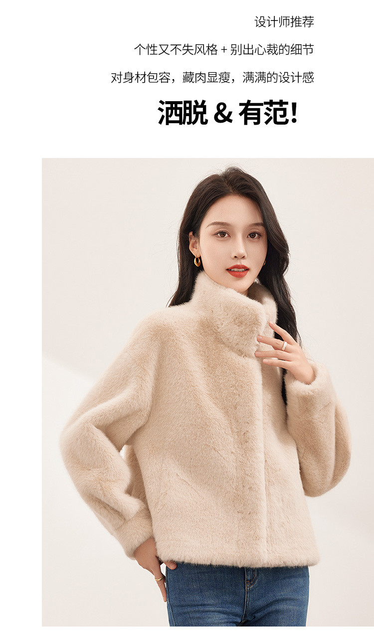 商品名称:冬季小个子保暖仿貂绒环保皮草女式时尚休闲短款立领仿皮草外套 783519
