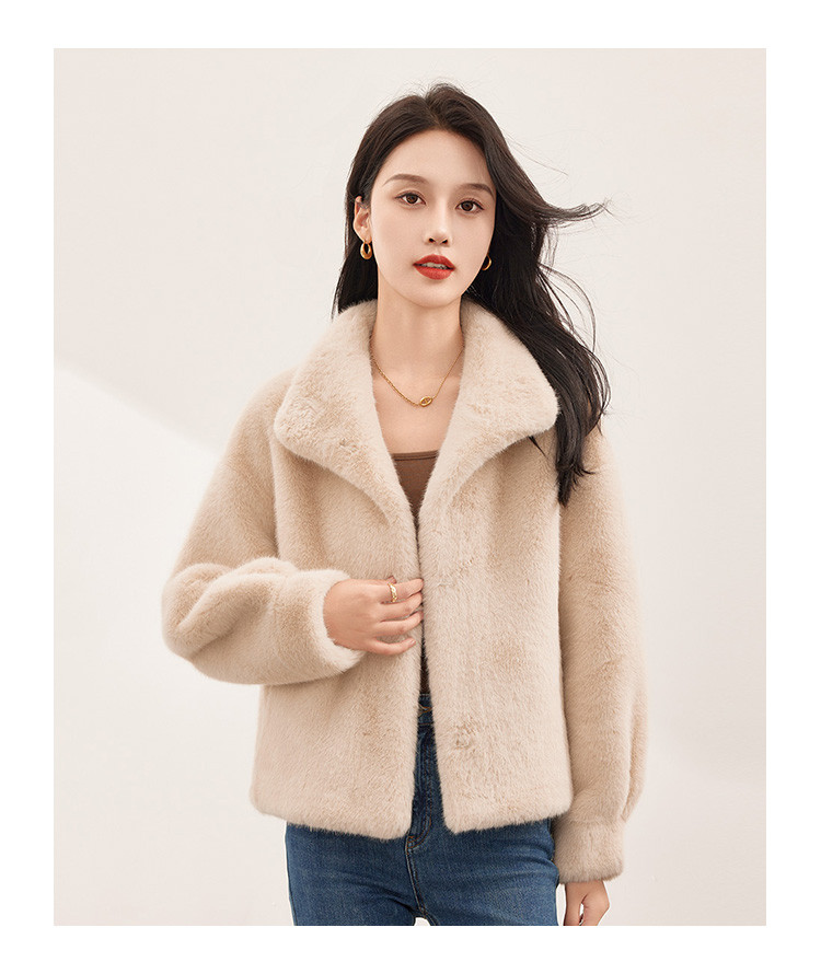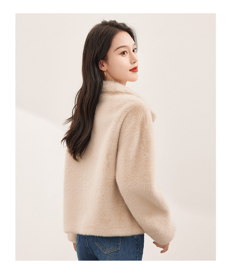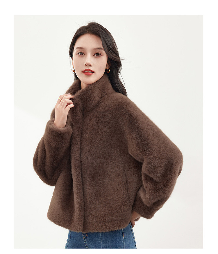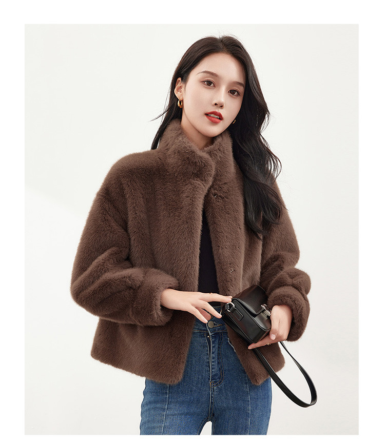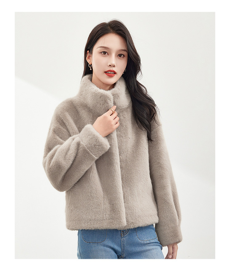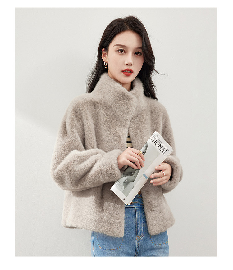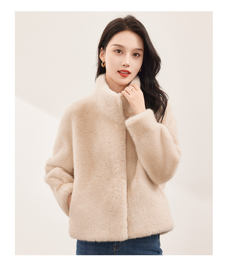 商品名称:冬季小个子保暖仿貂绒环保皮草女式时尚休闲短款立领仿皮草外套 783519