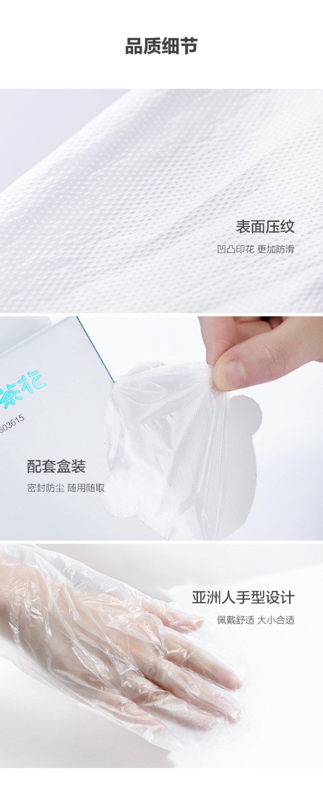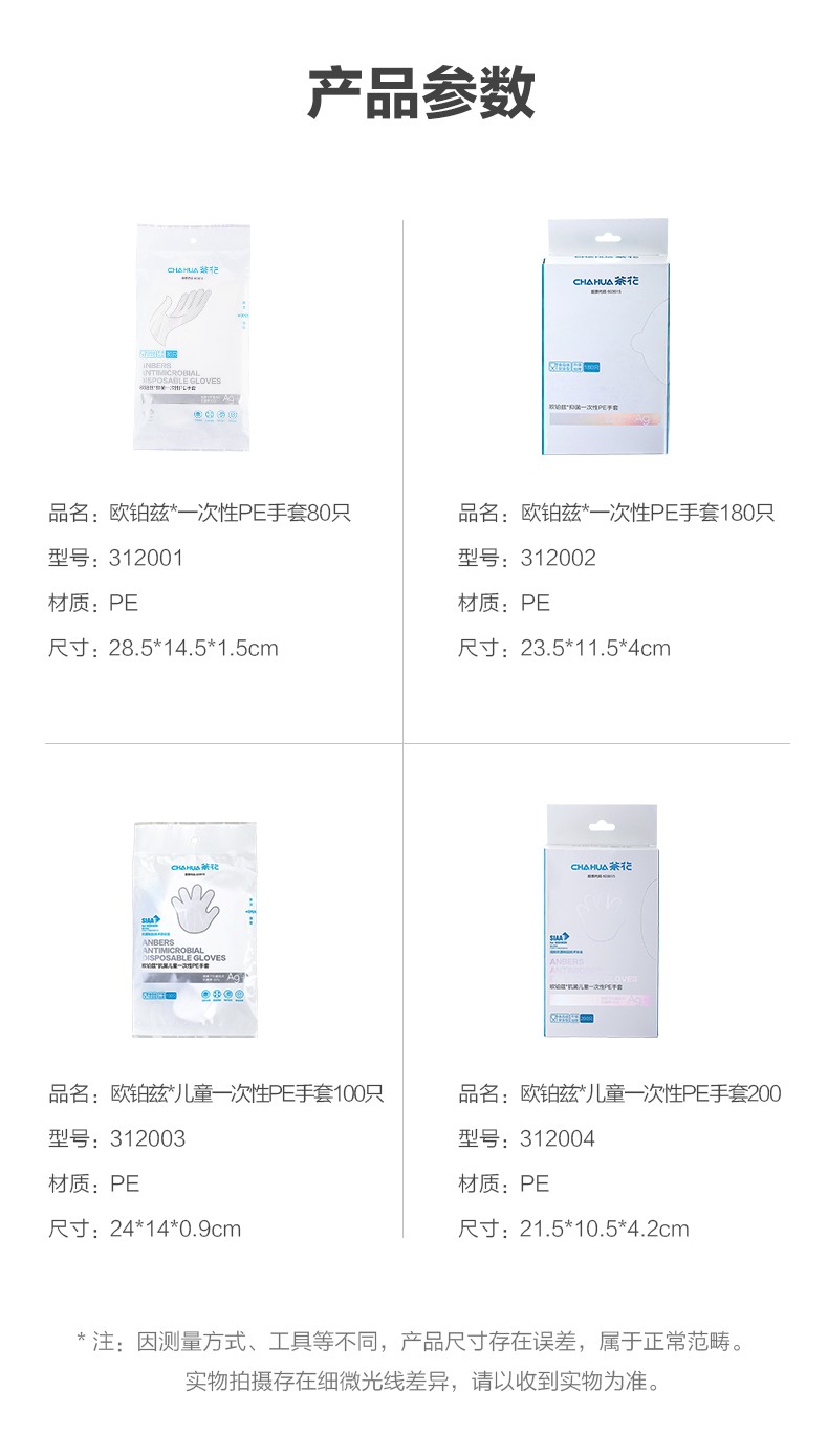 商品名称:茶花欧铂兹*一次性PE手套成人/儿童