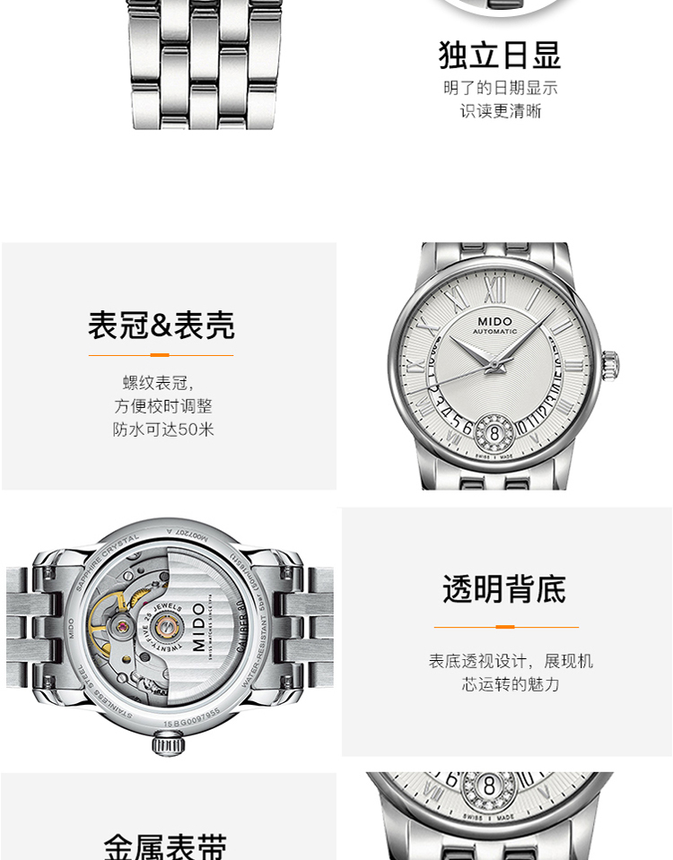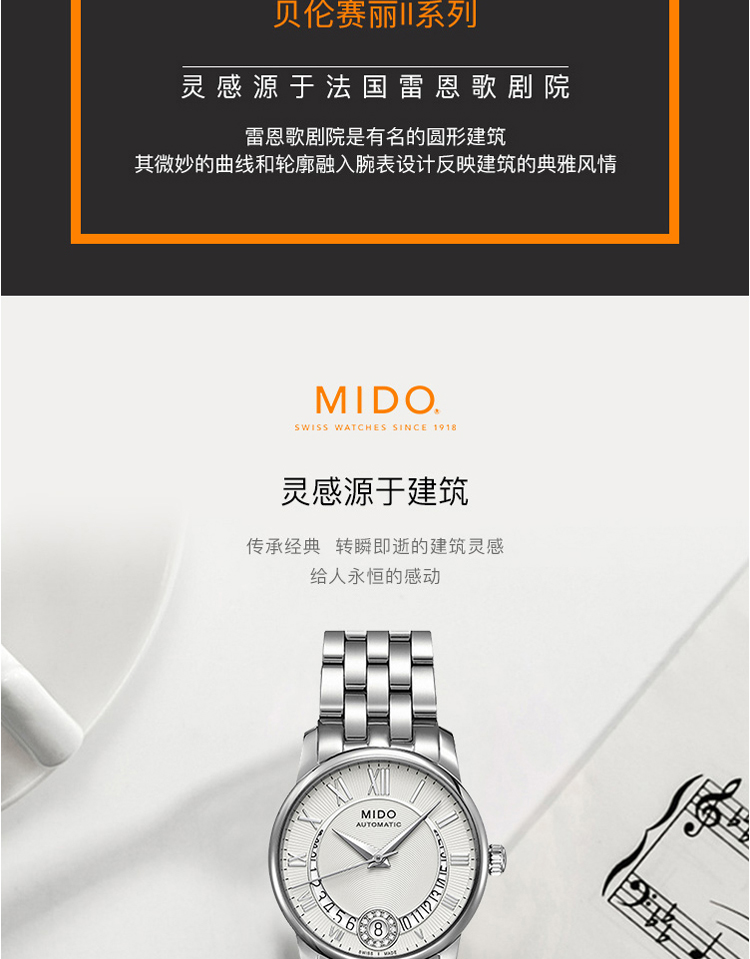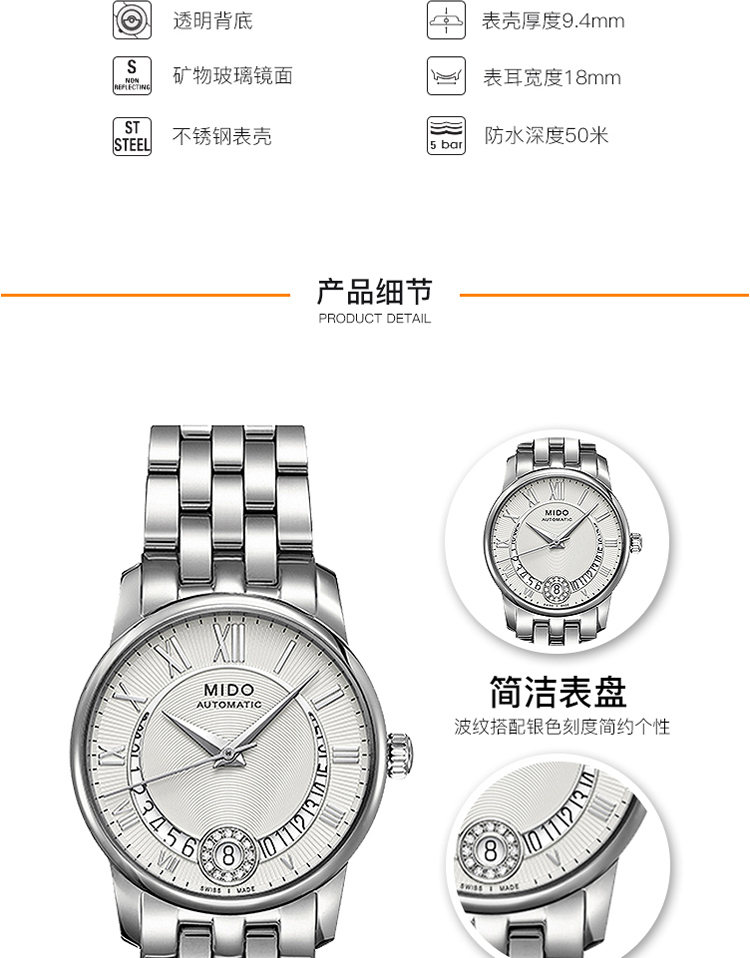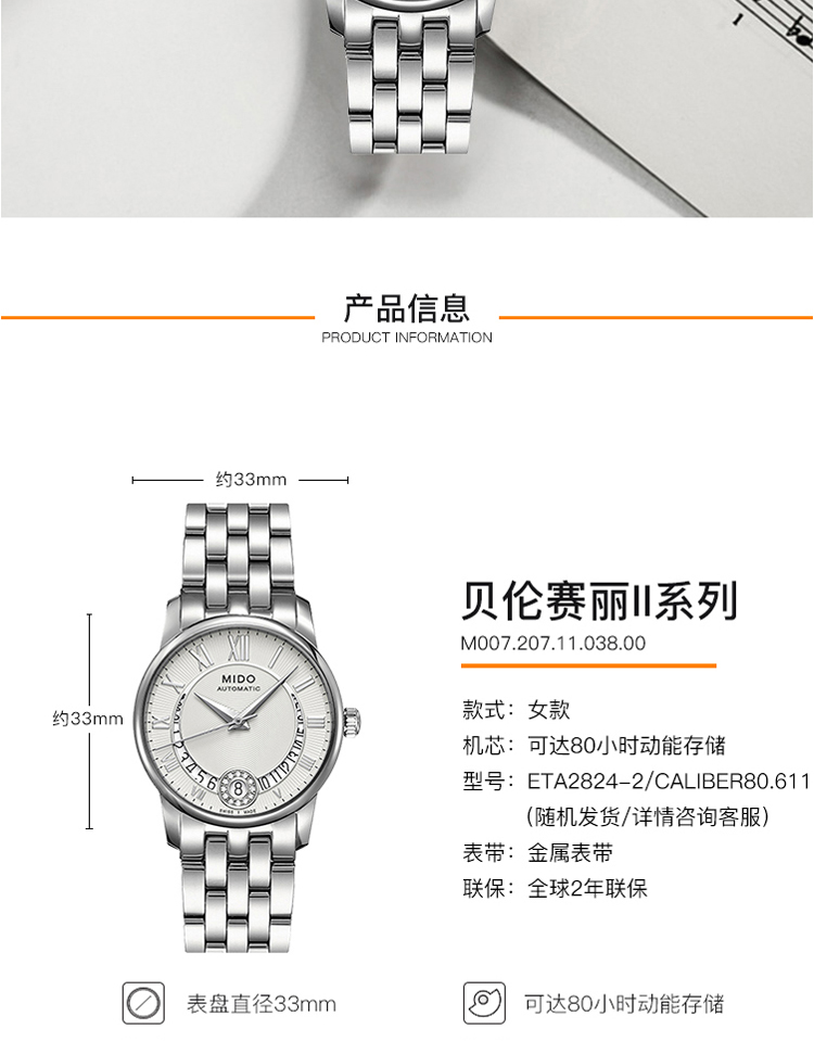 商品名称:MIDO美度 贝伦赛丽II系列机械女表(不支持无理由退换货)