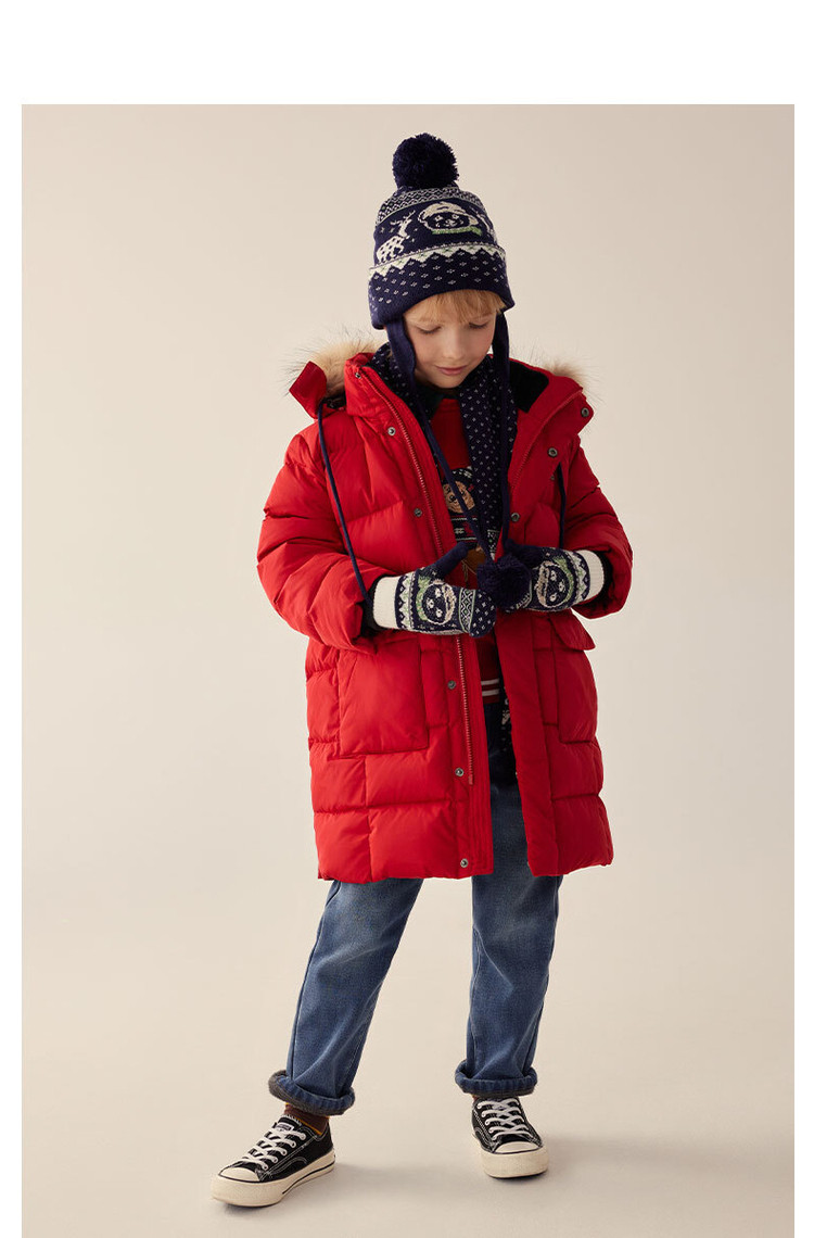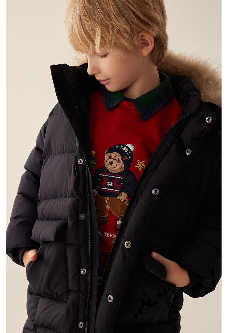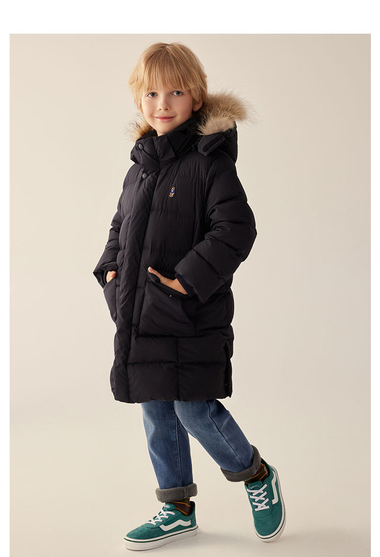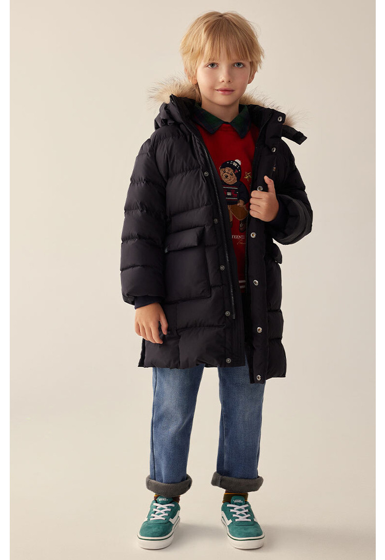 商品名称:【长款连帽羽绒】小熊童装秋冬男女童连帽毛领长款羽绒服 847617