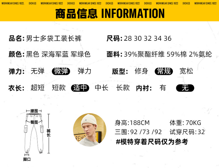 商品名称:Dickies工装裤春夏男女休闲束脚长裤 DK008938 759376