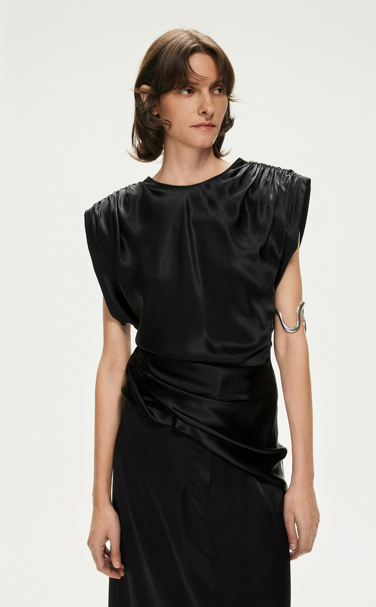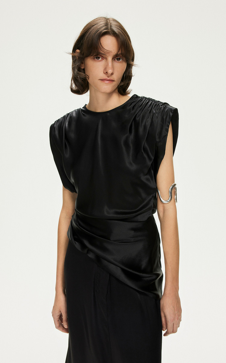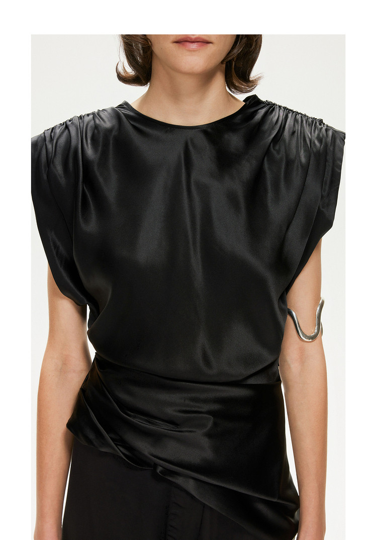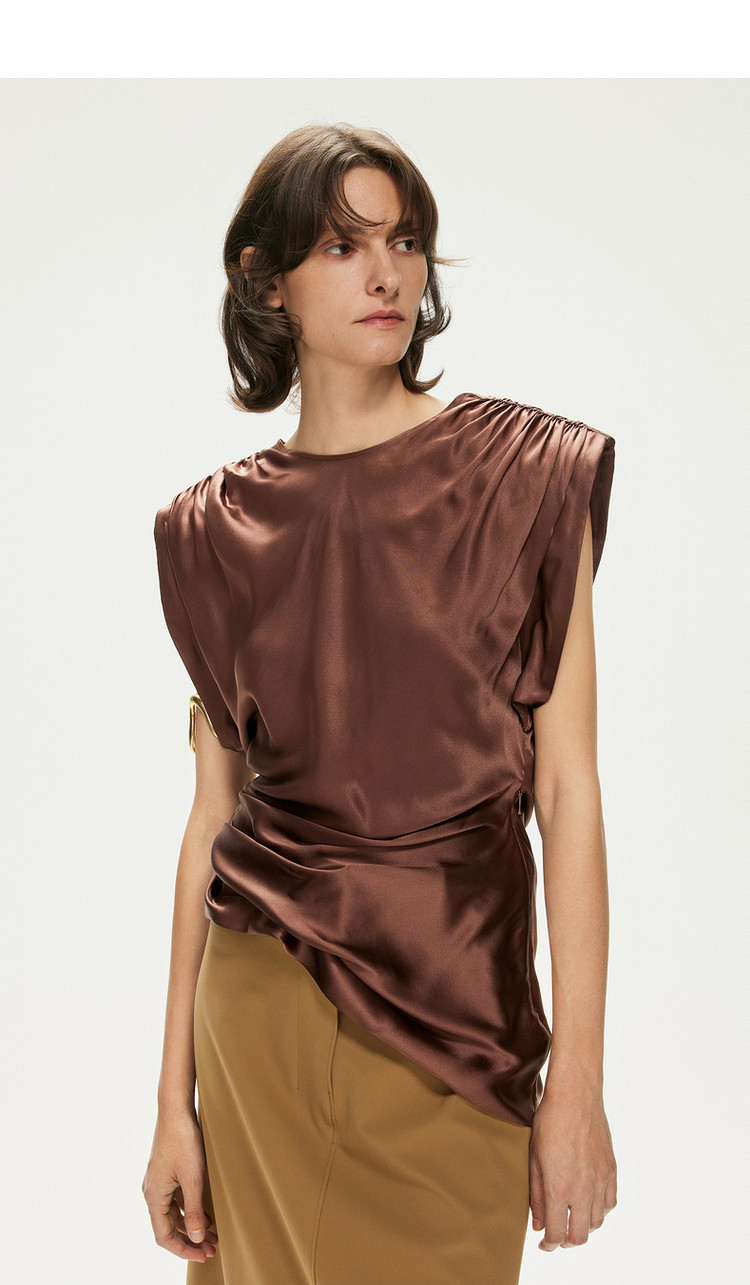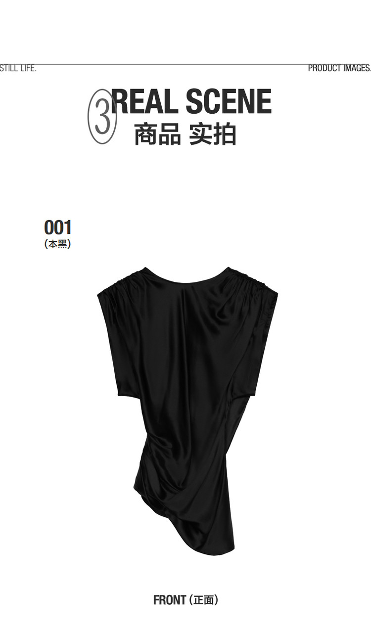 【含桑蚕丝】圆领纯色休闲舒适无袖T恤针织打底衫 755603