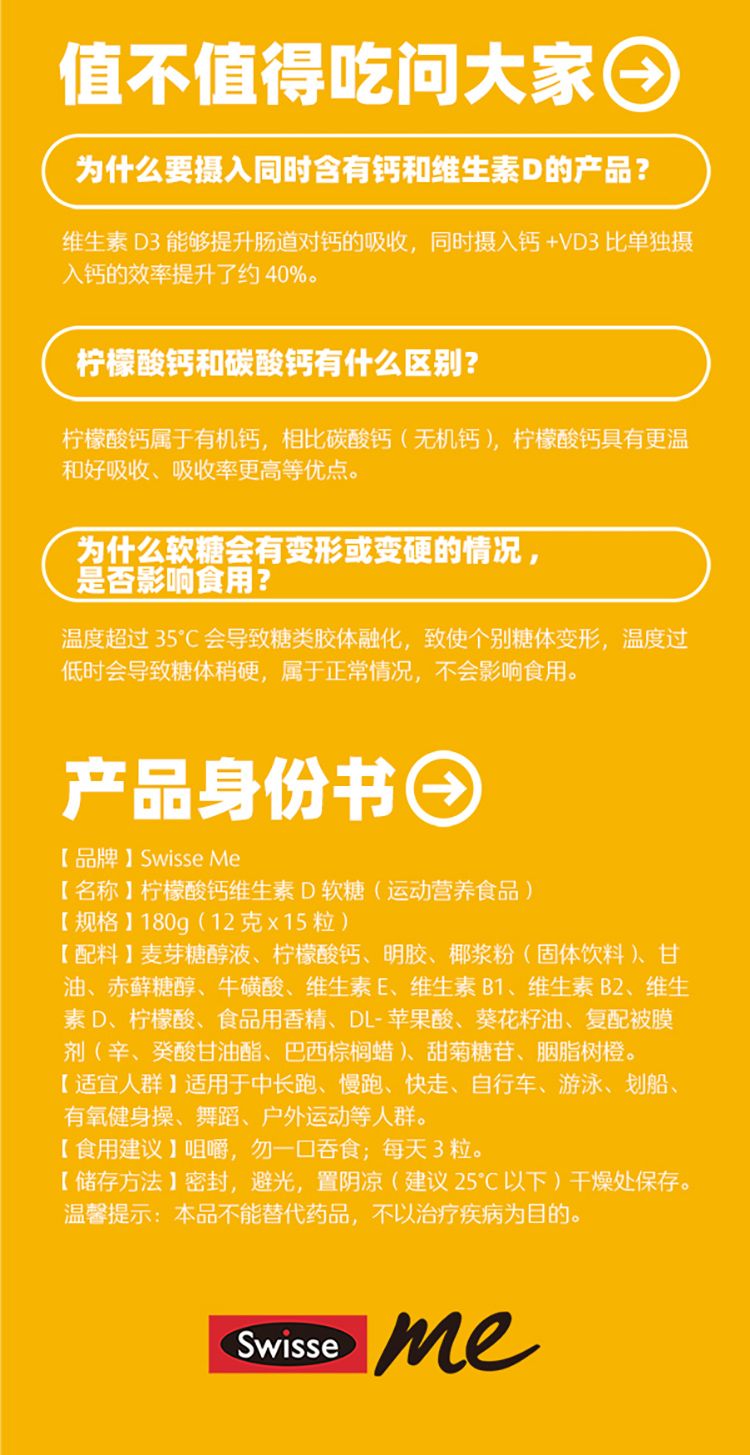 商品名称:Swisse/斯维诗 Me檬酸钙维生素D软糖(3粒/包*15包)