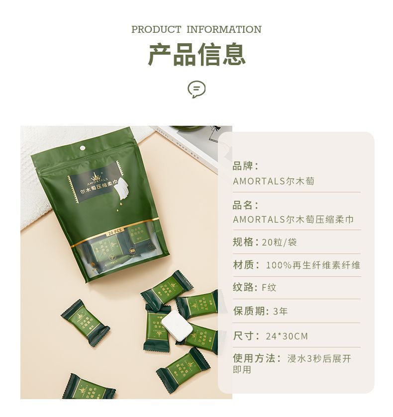 商品名称:尔木萄 压缩柔巾一次性洗脸巾 20粒/袋