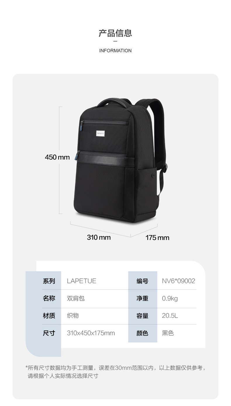 商品名称:新秀丽双肩包黑色 NV6*09002