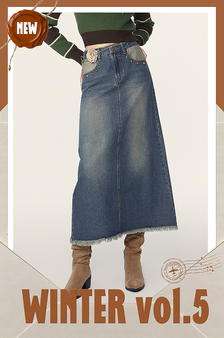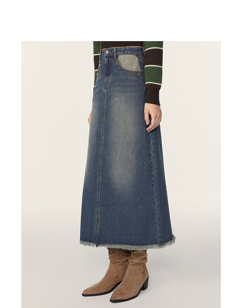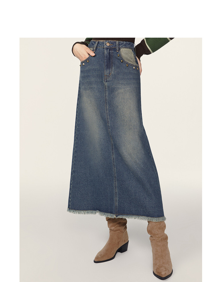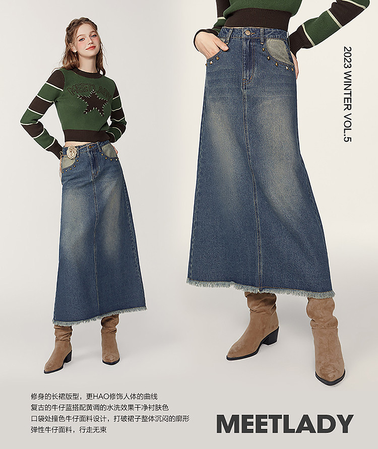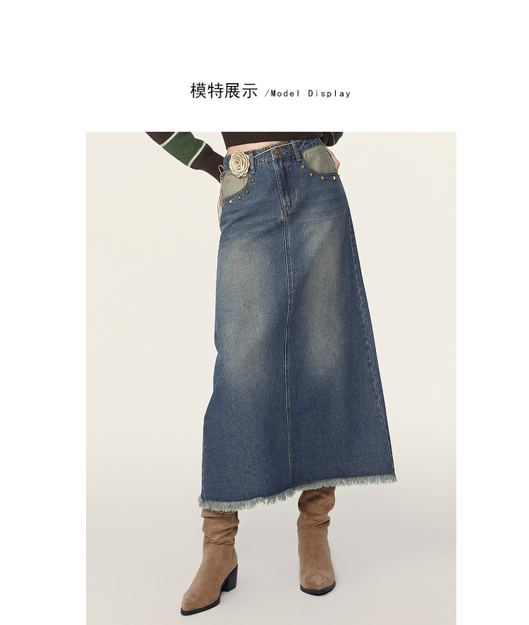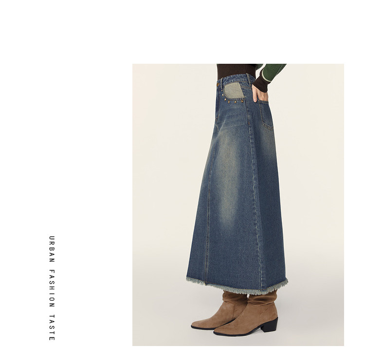 商品名称:春秋复古水洗牛仔半身裙女今年流行长款包臀a字裙 223124