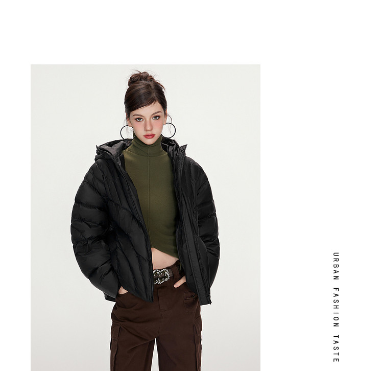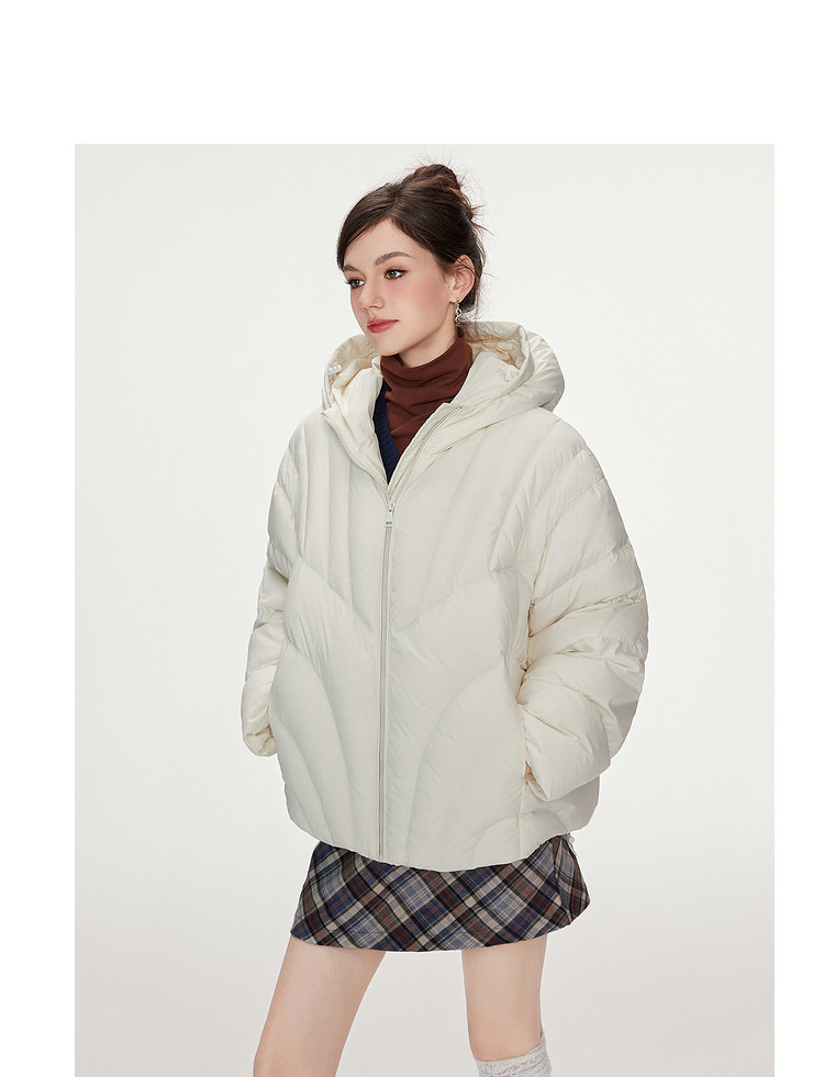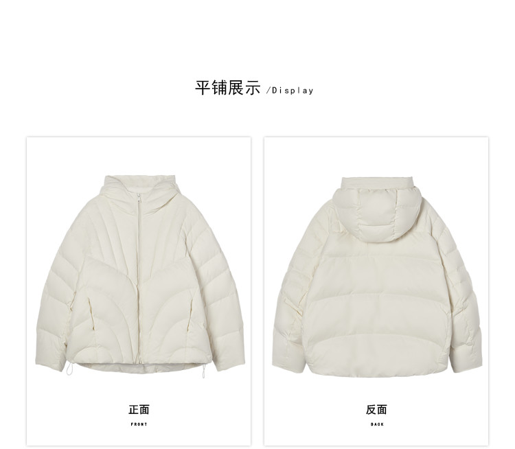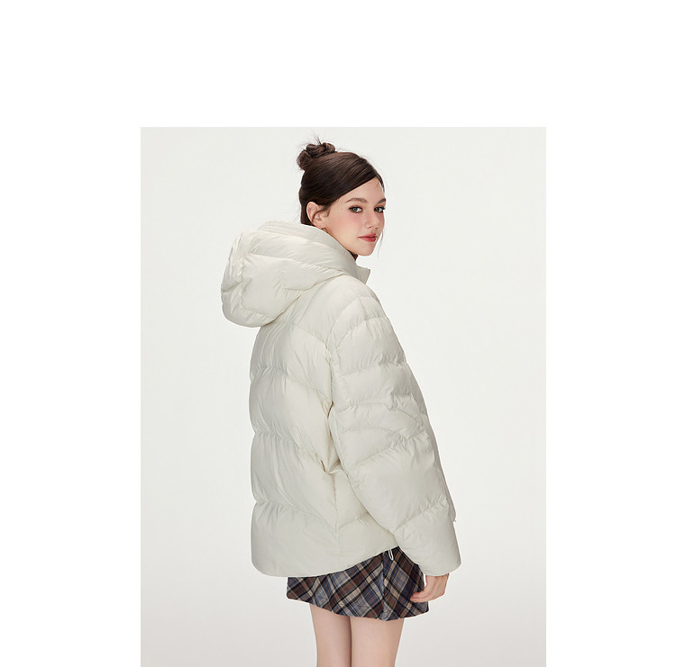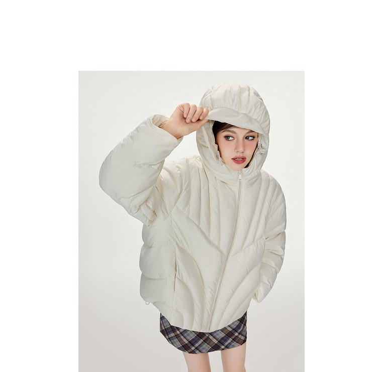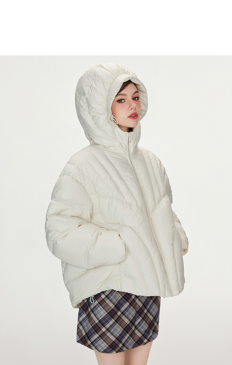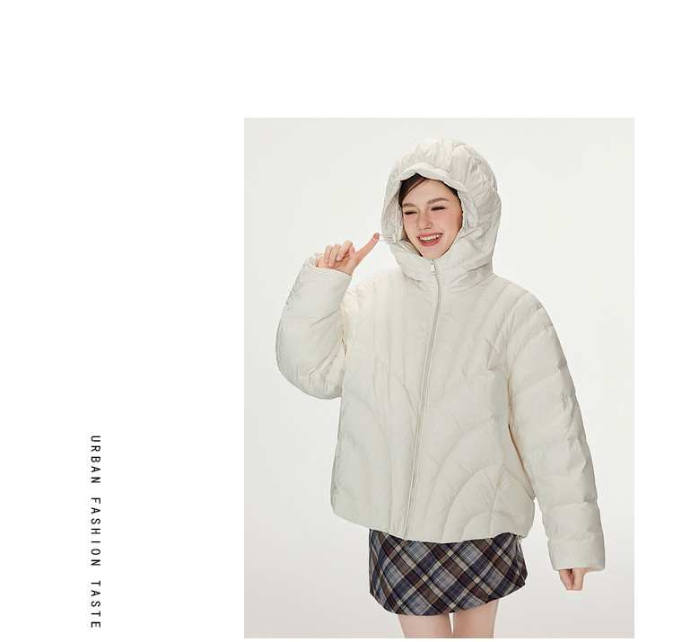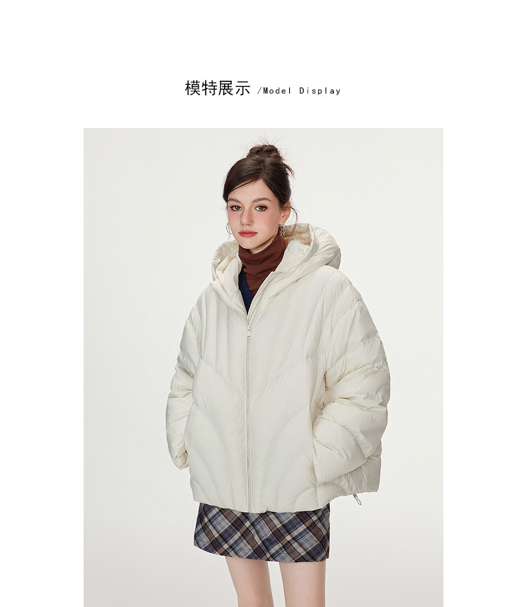 商品名称:【90白鸭绒】简约百搭羽绒服女菱格减龄短款连帽加厚面包服外套 763028