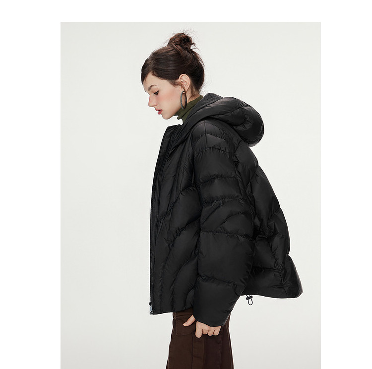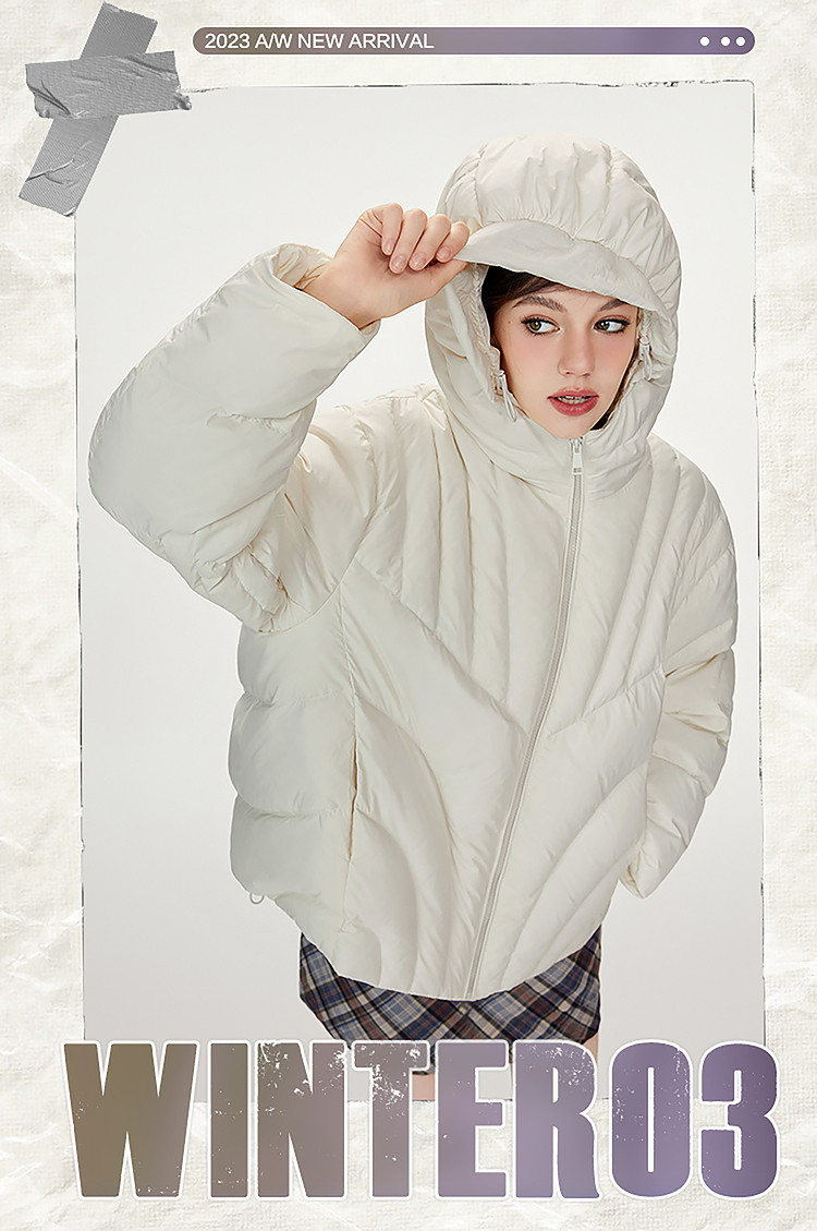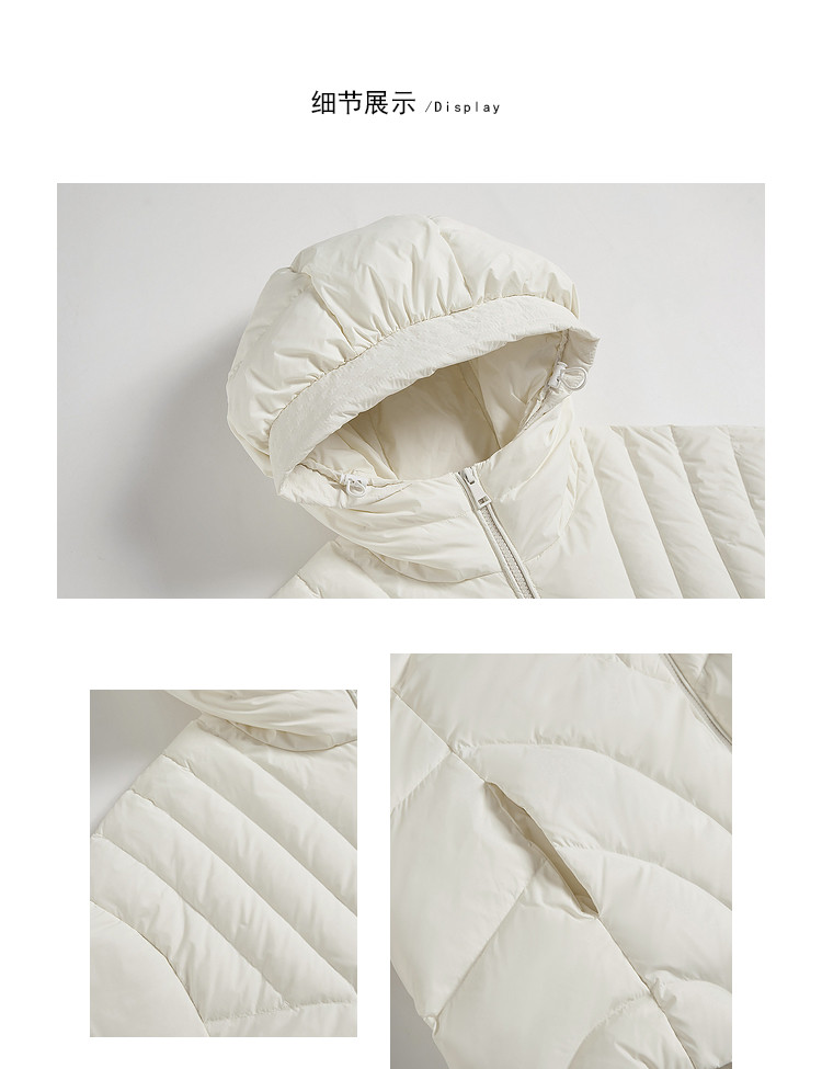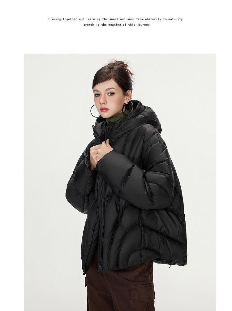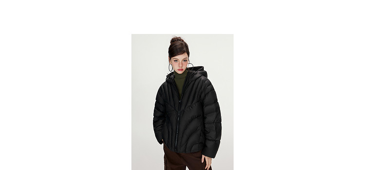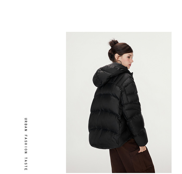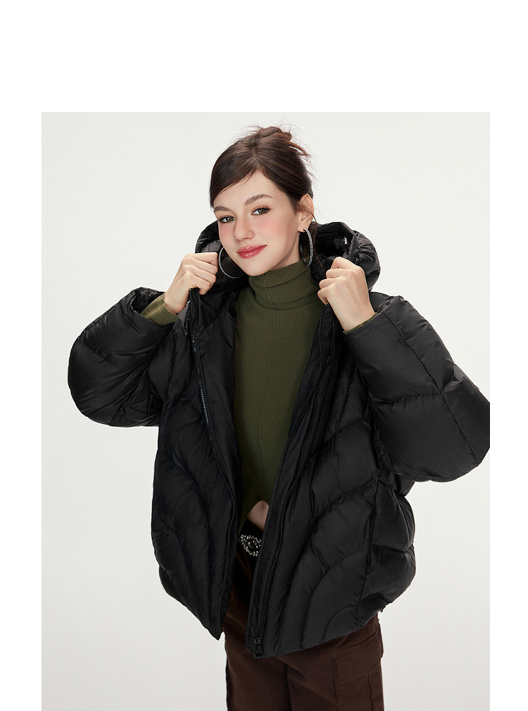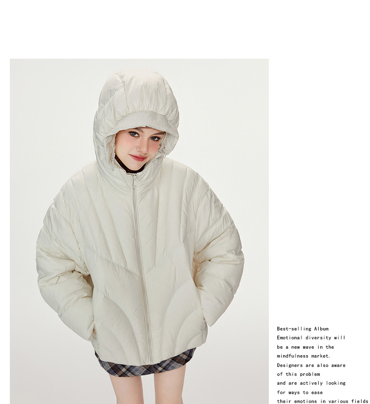 商品名称:【90白鸭绒】简约百搭羽绒服女菱格减龄短款连帽加厚面包服外套 763028