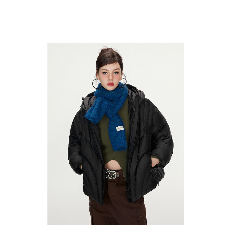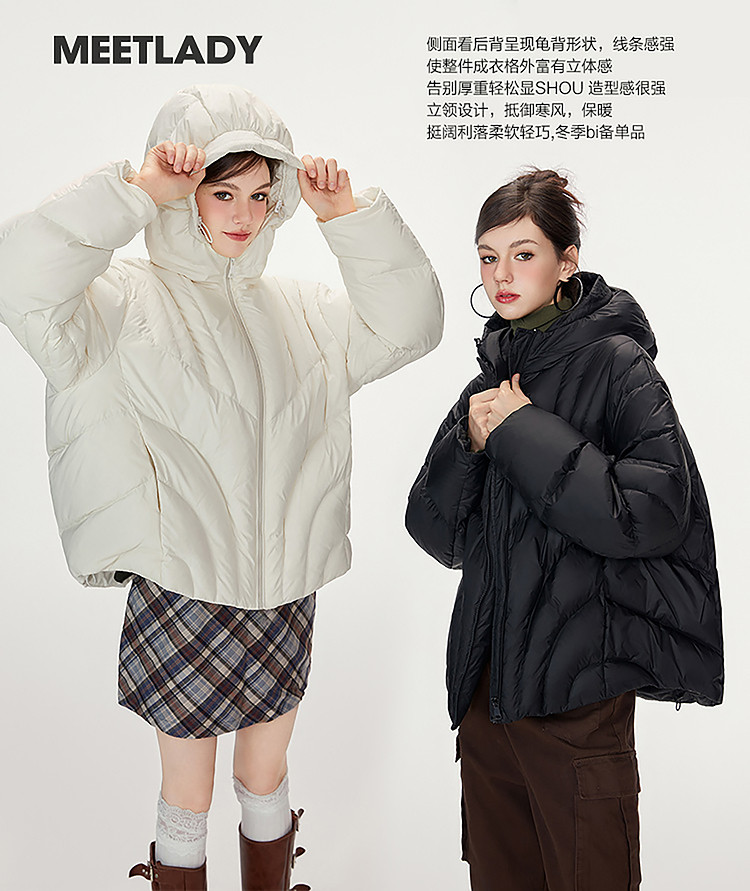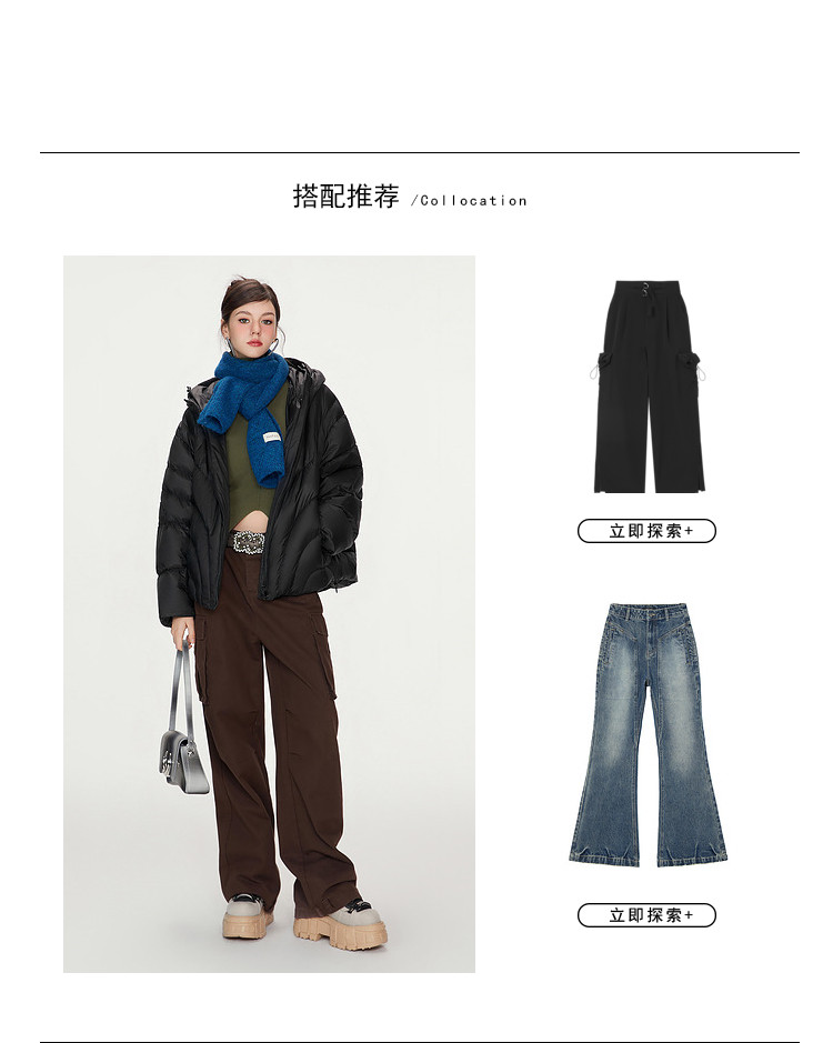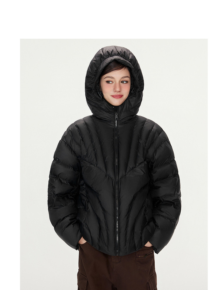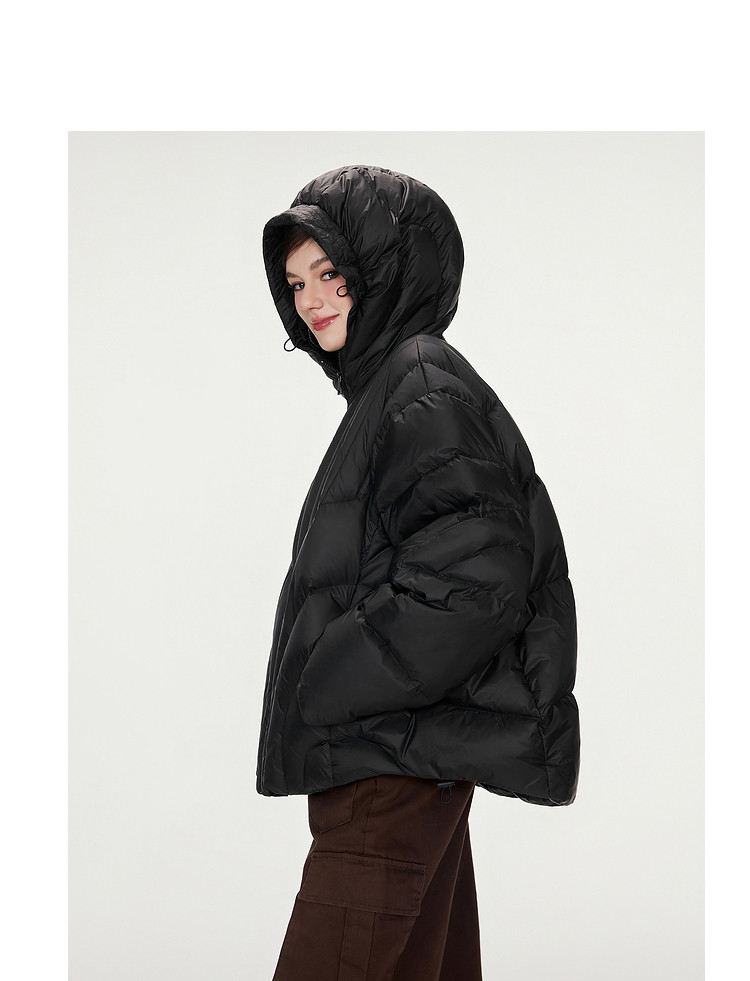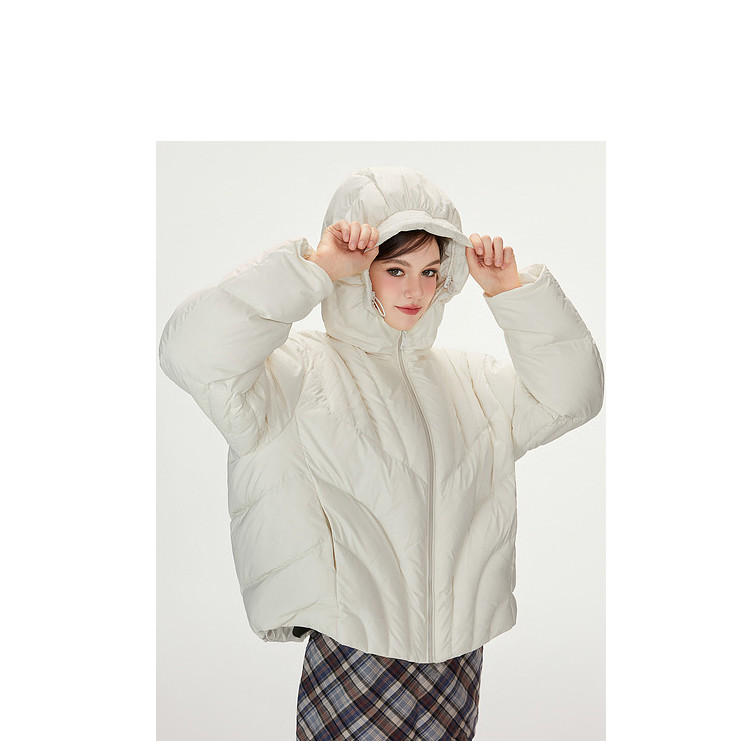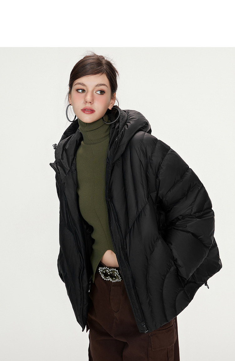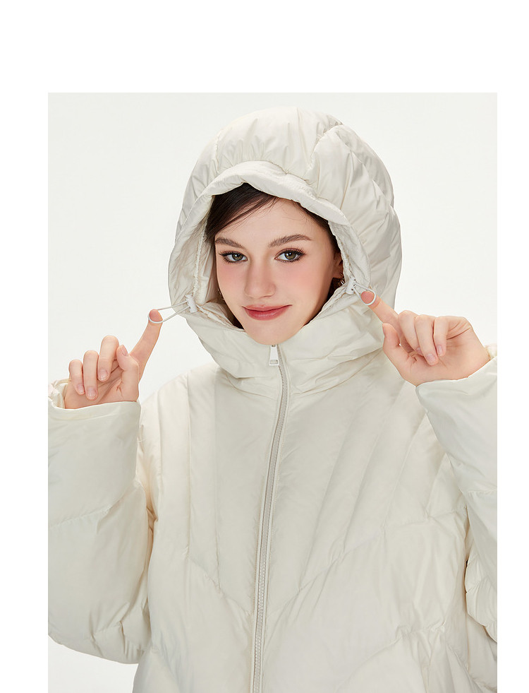 商品名称:【90白鸭绒】简约百搭羽绒服女菱格减龄短款连帽加厚面包服外套 763028