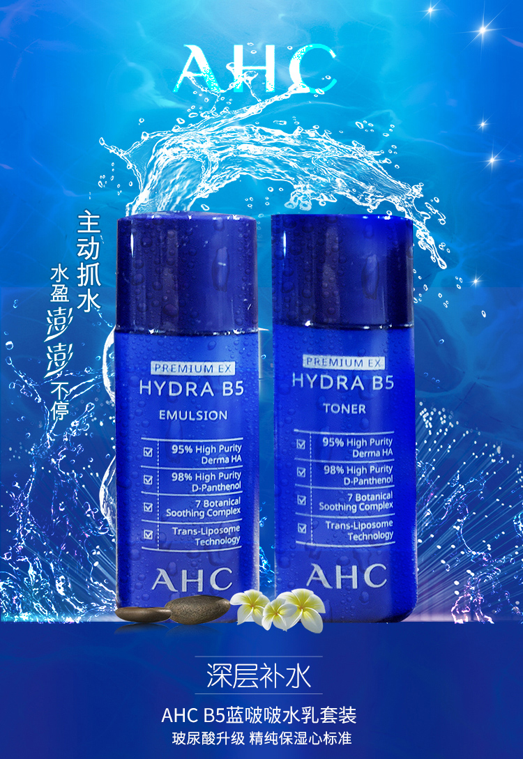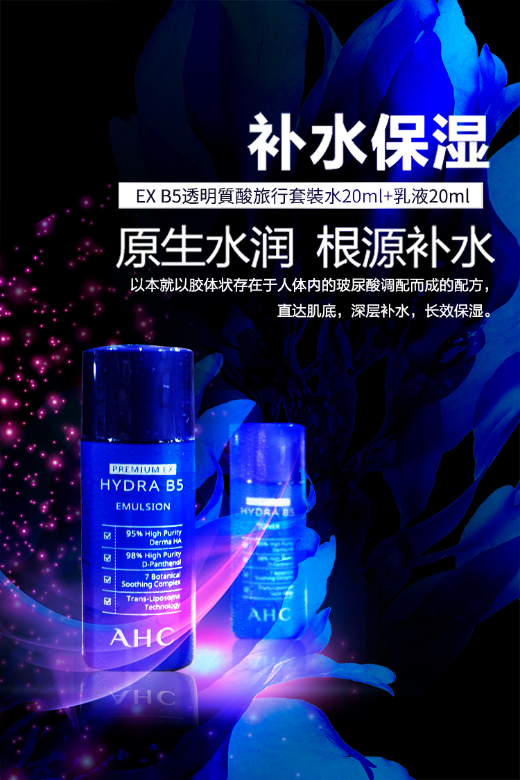 商品名称:AHC/爱和纯 升級EX B5透明蓝啵啵水乳旅行套裝 水20ml+乳液20ml