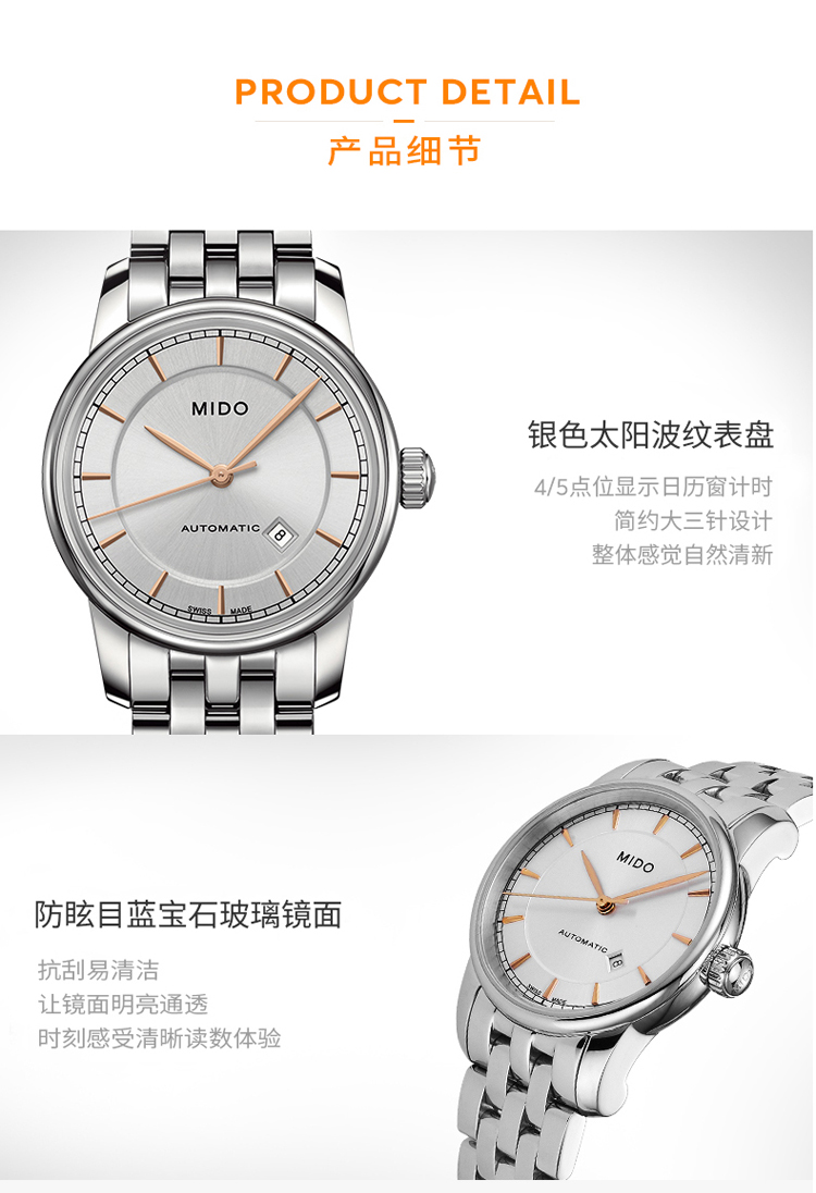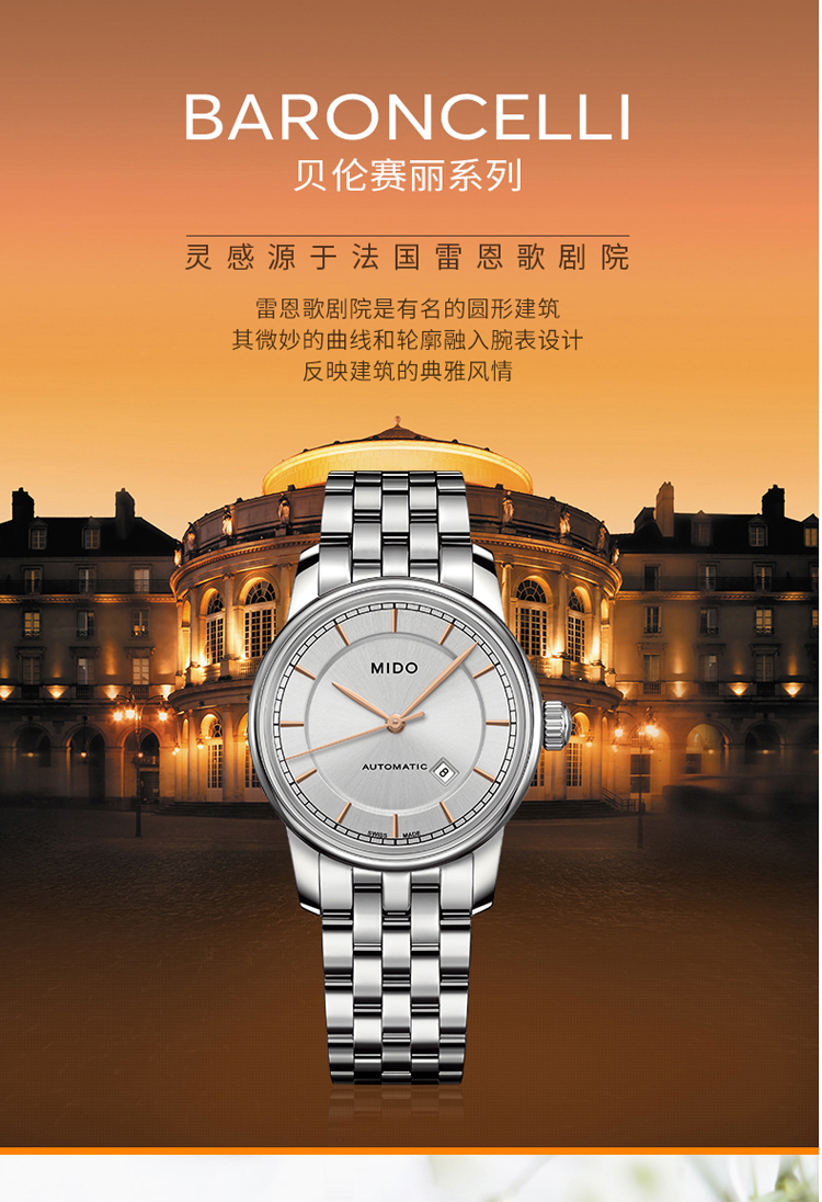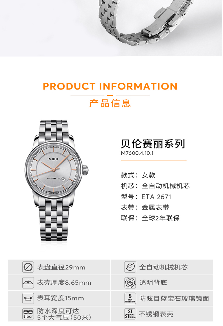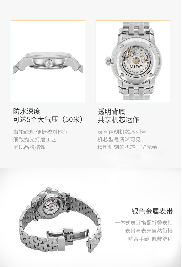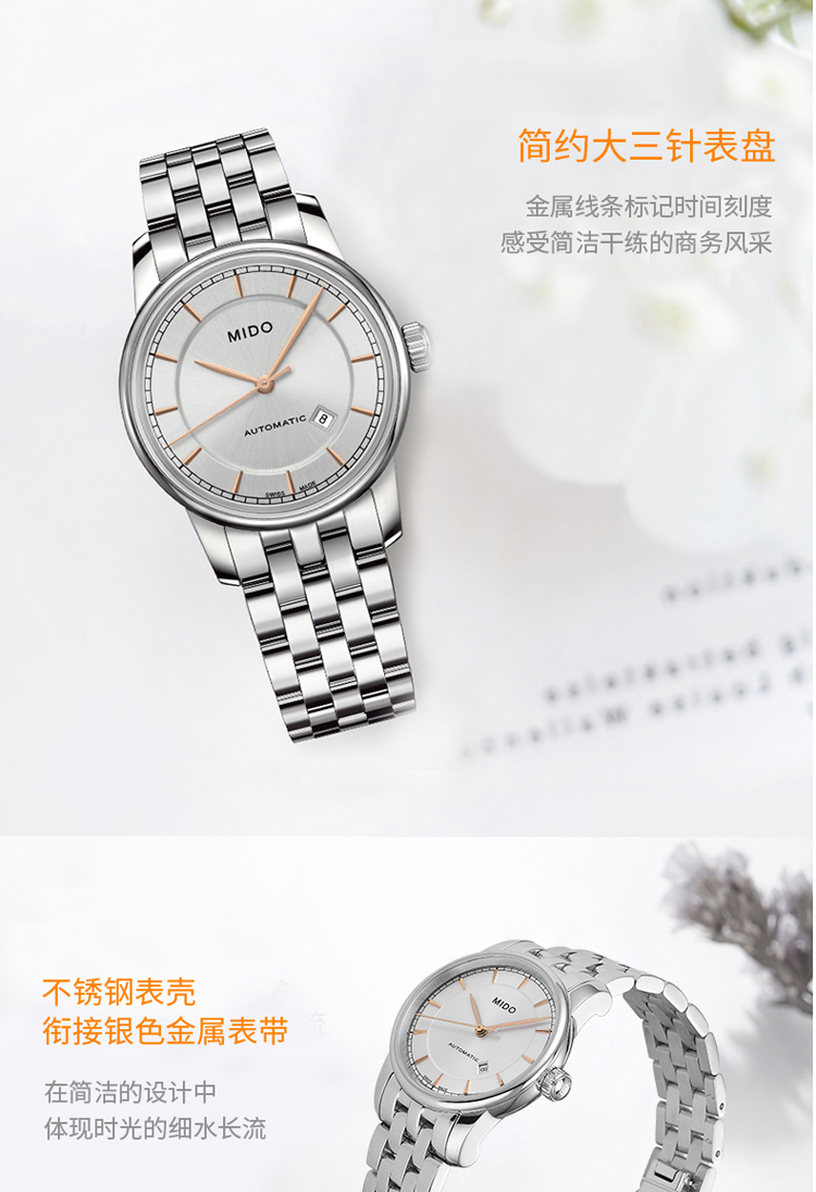商品名称:MIDO美度 贝伦赛丽系列简约复古钢带自动机械腕表 (不支持无理由退换货)