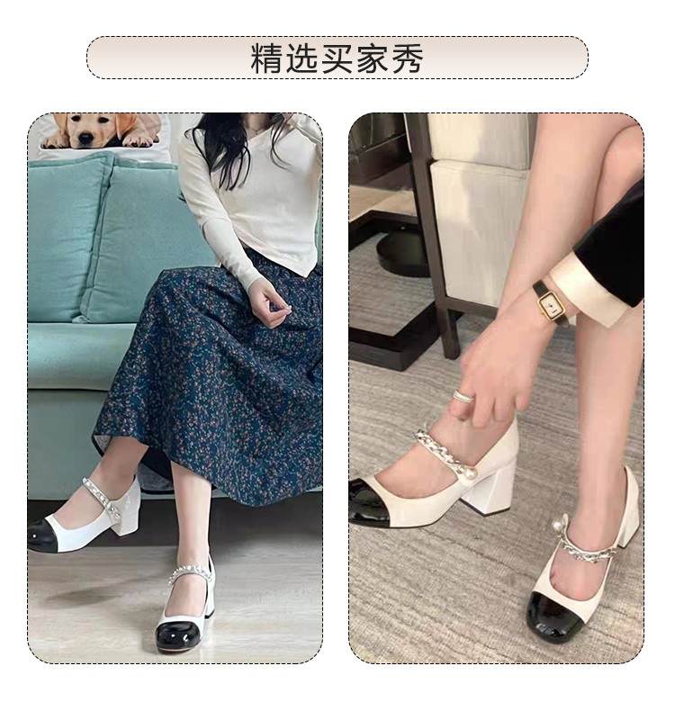 商品名称:秋季小香风粗跟黑白拼色舒适优雅气质通勤浅口女单鞋 607258
