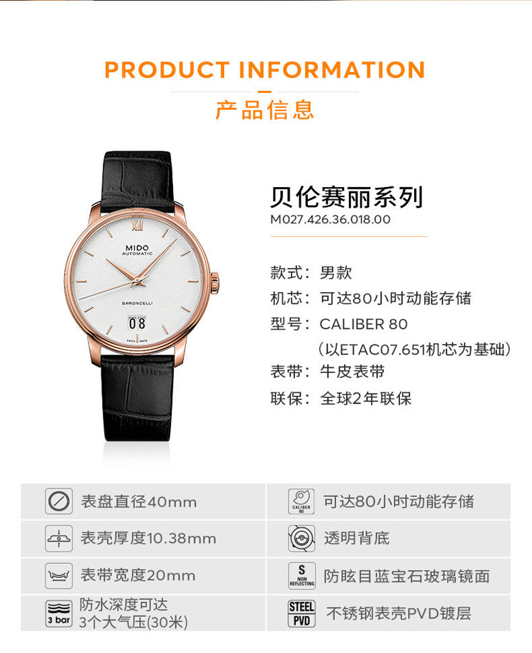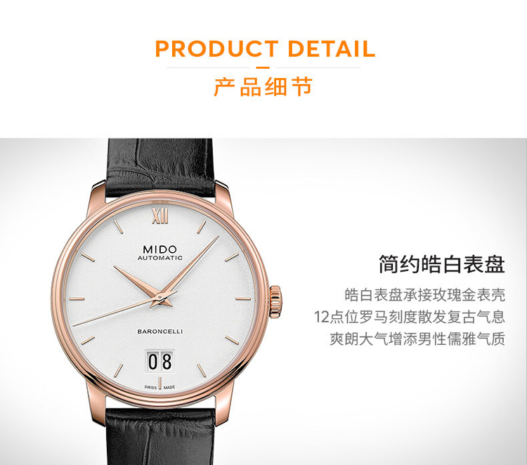 商品名称:MIDO美度 贝伦赛丽纪念日男表 (不支持无理由退换货)