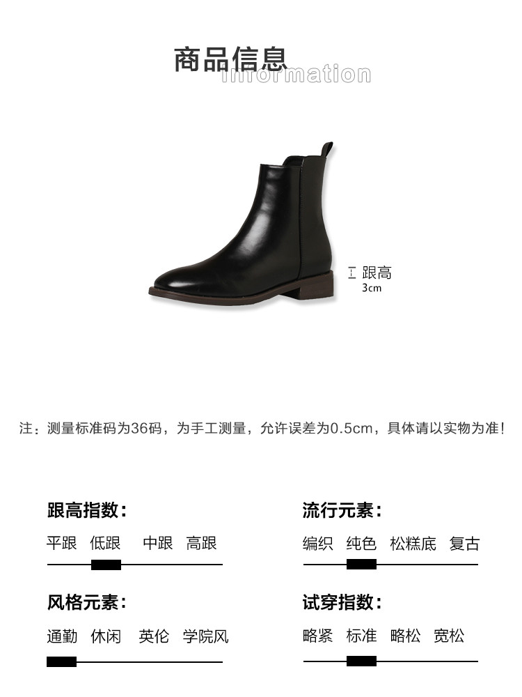 商品名称:春秋百搭通勤低跟方头时尚切尔西短靴女靴 823297