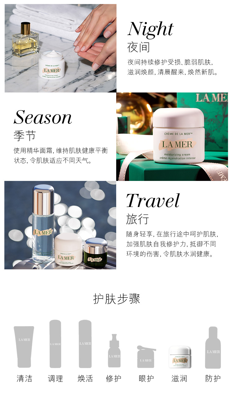La Mer/海蓝之谜 小样旅行体验组合装 修护精萃液 精粹水30ml+经典传奇面霜7ml+洁面30ml