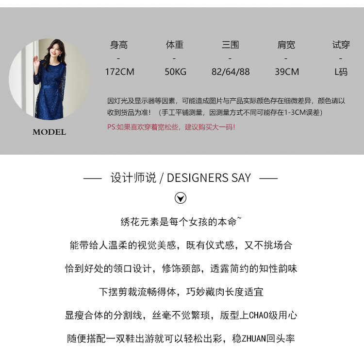 商品名称:【品味女人】时尚淑女优雅绣花精致浪漫圆领长袖连衣裙 835992