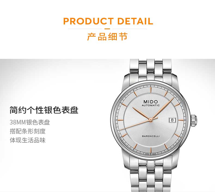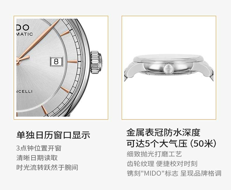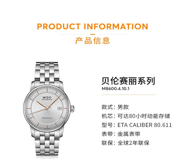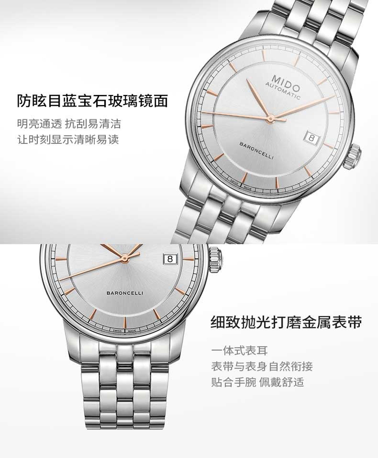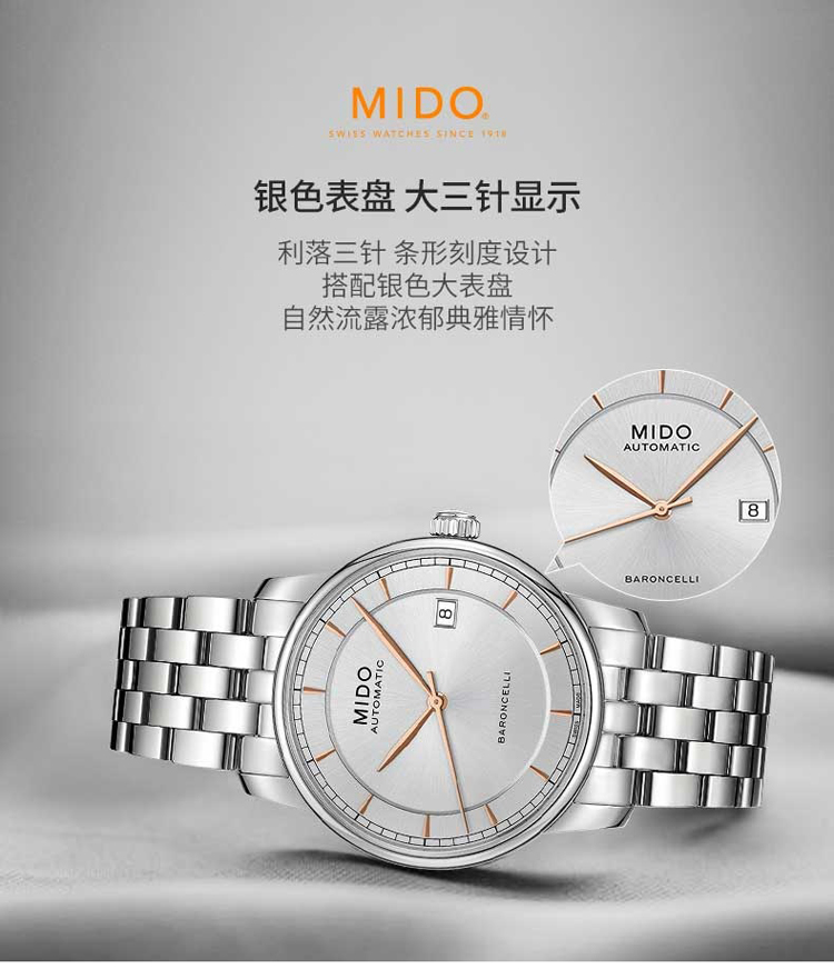 商品名称:MIDO美度 贝伦赛丽复古钢带男表(不支持无理由退换货)