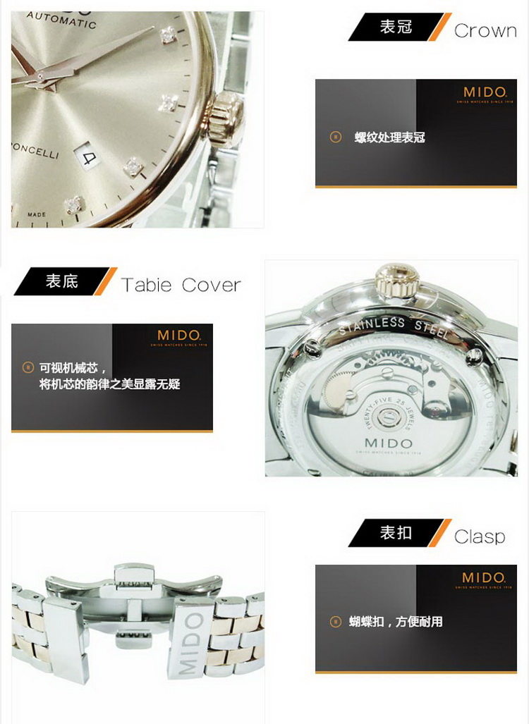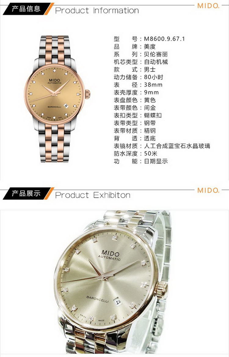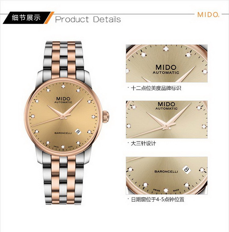 商品名称:MIDO美度 贝伦赛丽钢带机械手表 间金青铜色 (不支持无理由退换货)