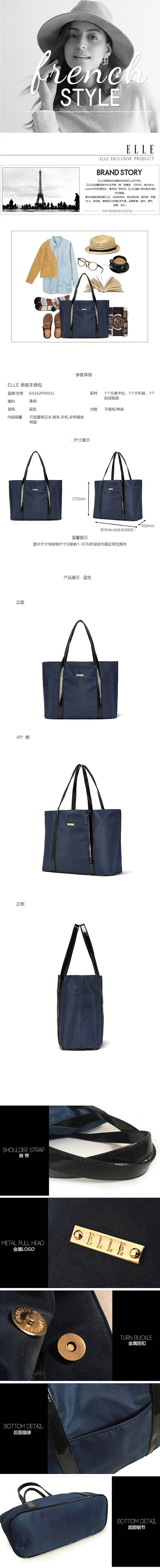 商品名称:ELLE休闲百搭手提包单肩包GH162P90011