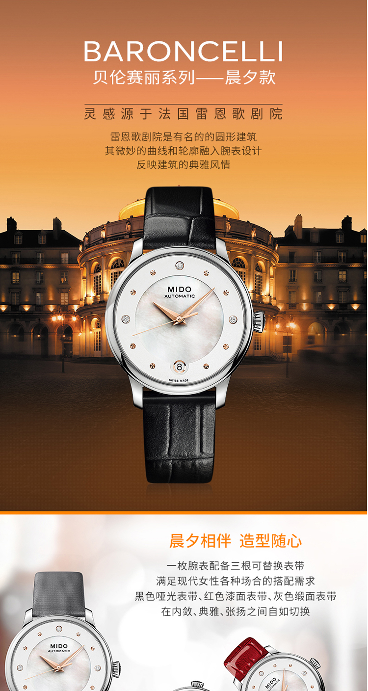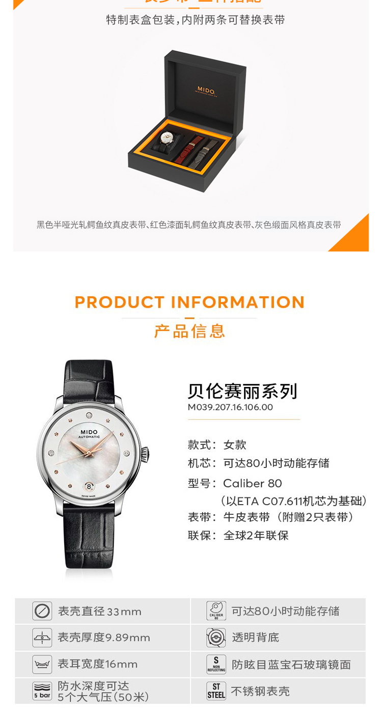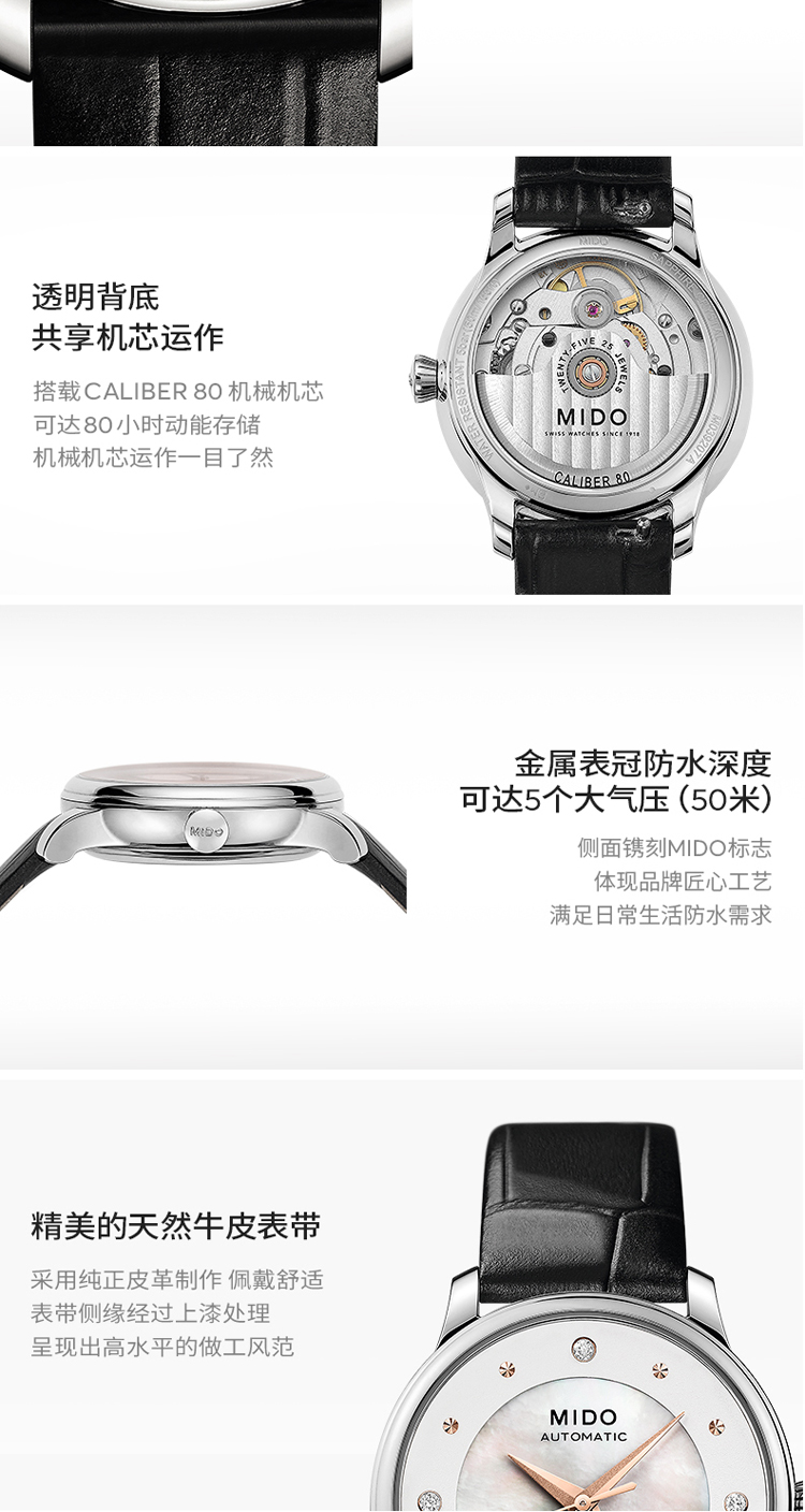 商品名称:MIDO美度 新款贝伦赛丽自动机械手表皮带女表 (不支持无理由退换货)