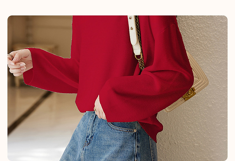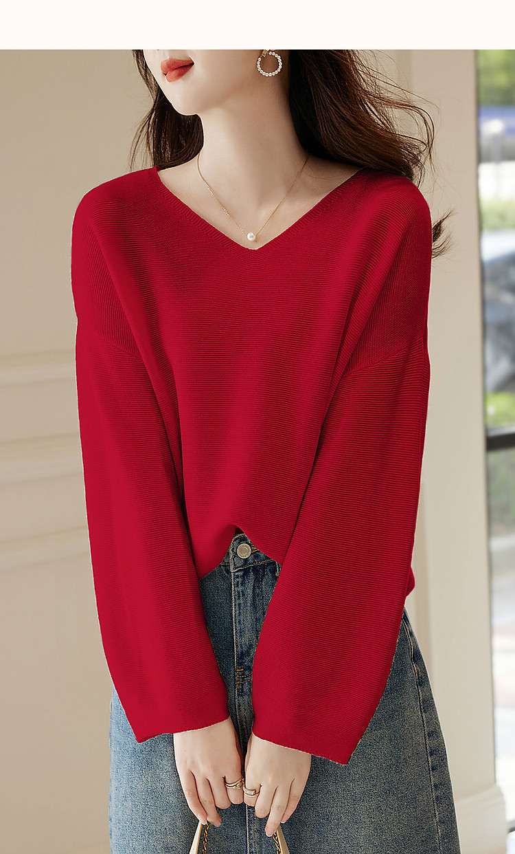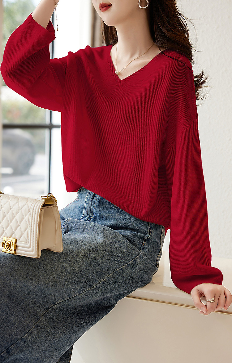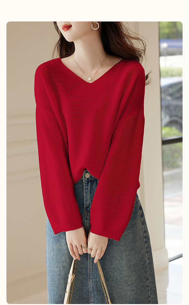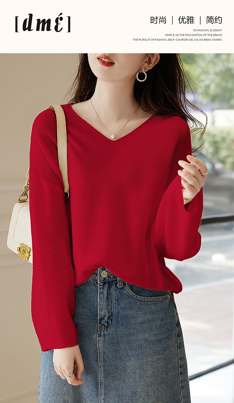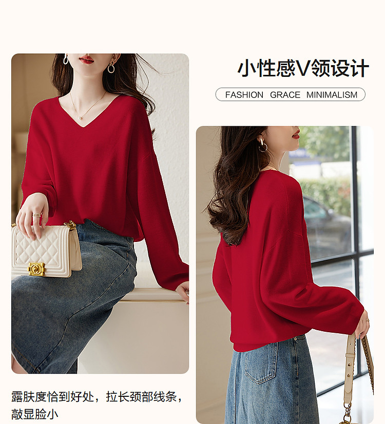 商品名称:【含绵羊毛】春秋浓情法式V领线衫灯笼袖遮肉好搭针织衫女上衣 854081
