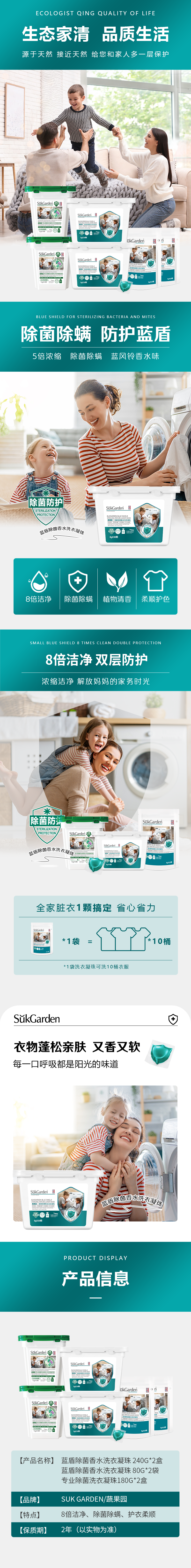 商品名称:蔬果园专业除菌洗衣凝珠(4D浓缩型)2盒+蔬果园蓝盾蓝风铃香水洗衣凝珠-8g*30颗(盒装)*2盒+蔬果园蓝盾蓝风铃香水