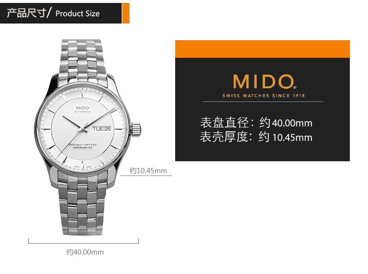 商品名称:MIDO美度 布鲁纳系列机械男表(不支持无理由退换货)