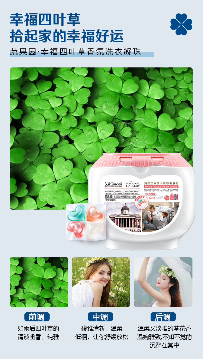 商品名称:英国国家美术馆联名系列-蔬果园幸福四叶草香氛洗衣凝珠10g*52颗*2+英国国家美术馆联名系列-蔬果园幸福四叶草香氛洗衣