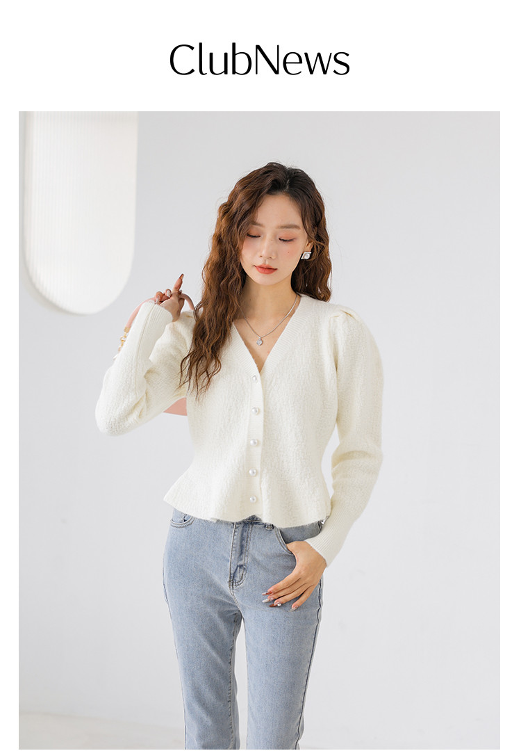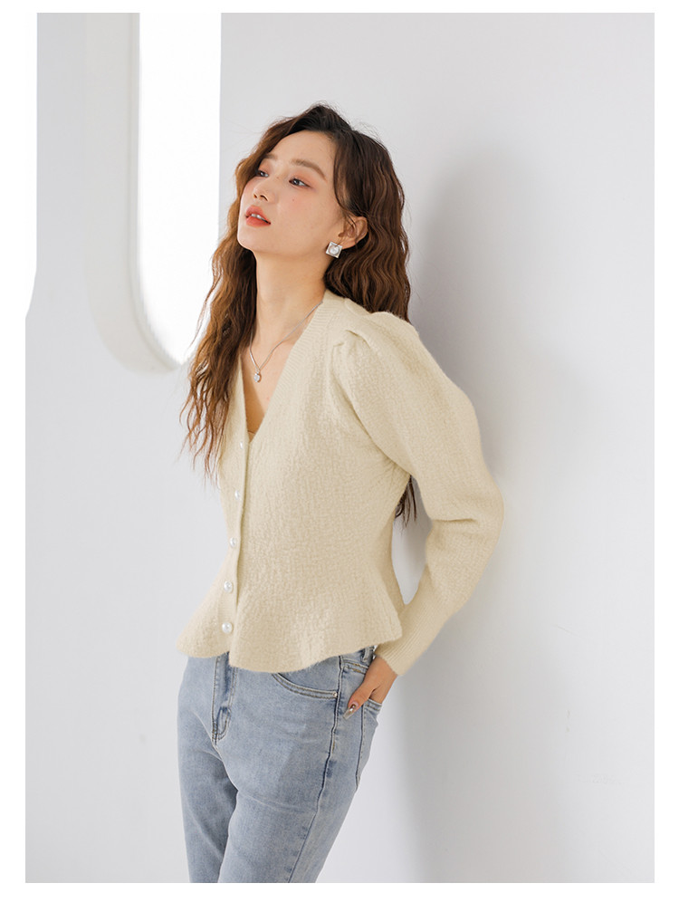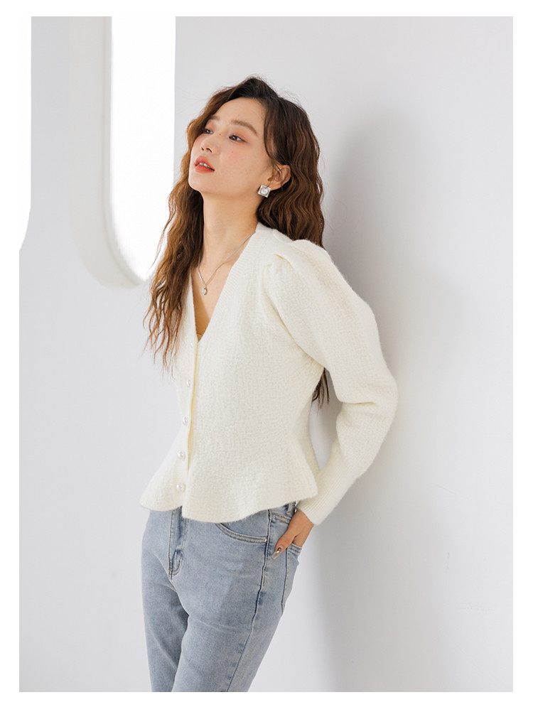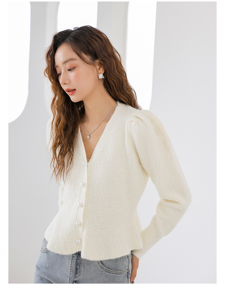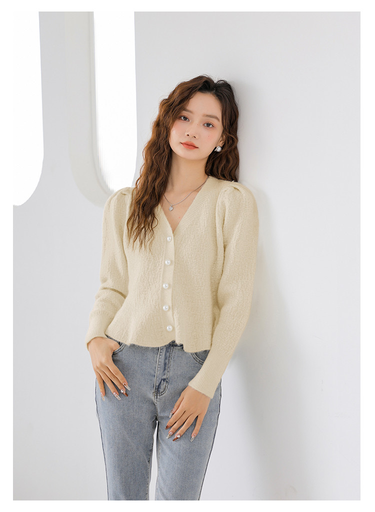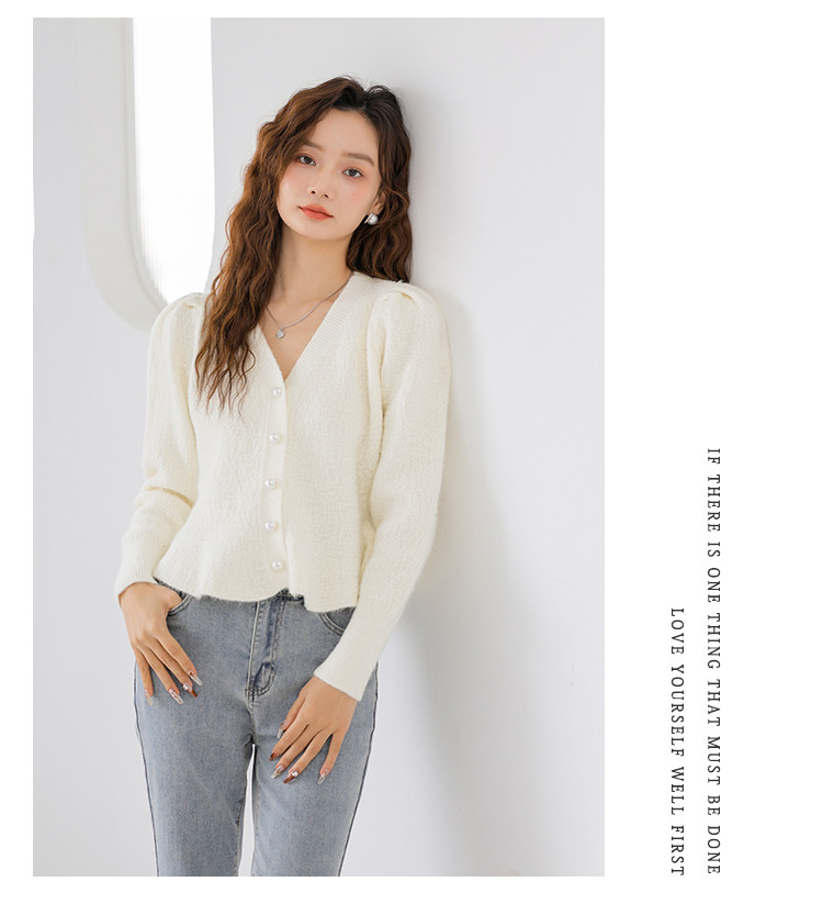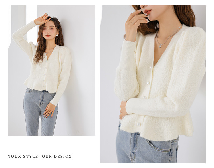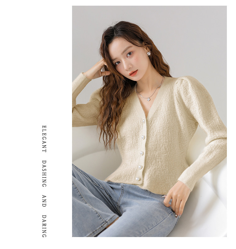 V领法式优雅长袖针织衫内搭高级感针织衫上衣 330883