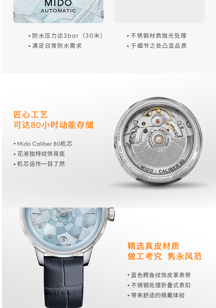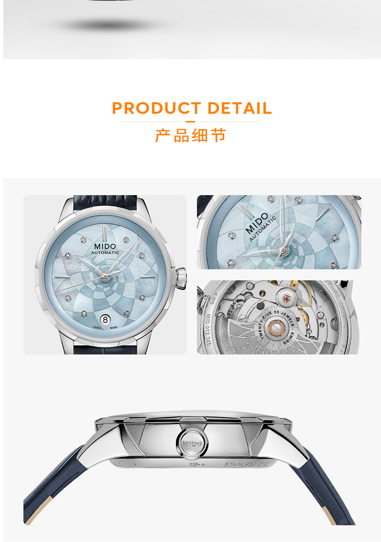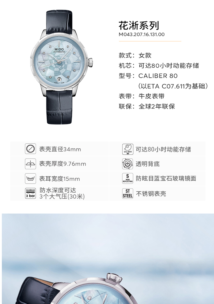 商品名称:MIDO美度 花淅系列全自动瑞士机械手表皮带女表 (不支持无理由退换货)