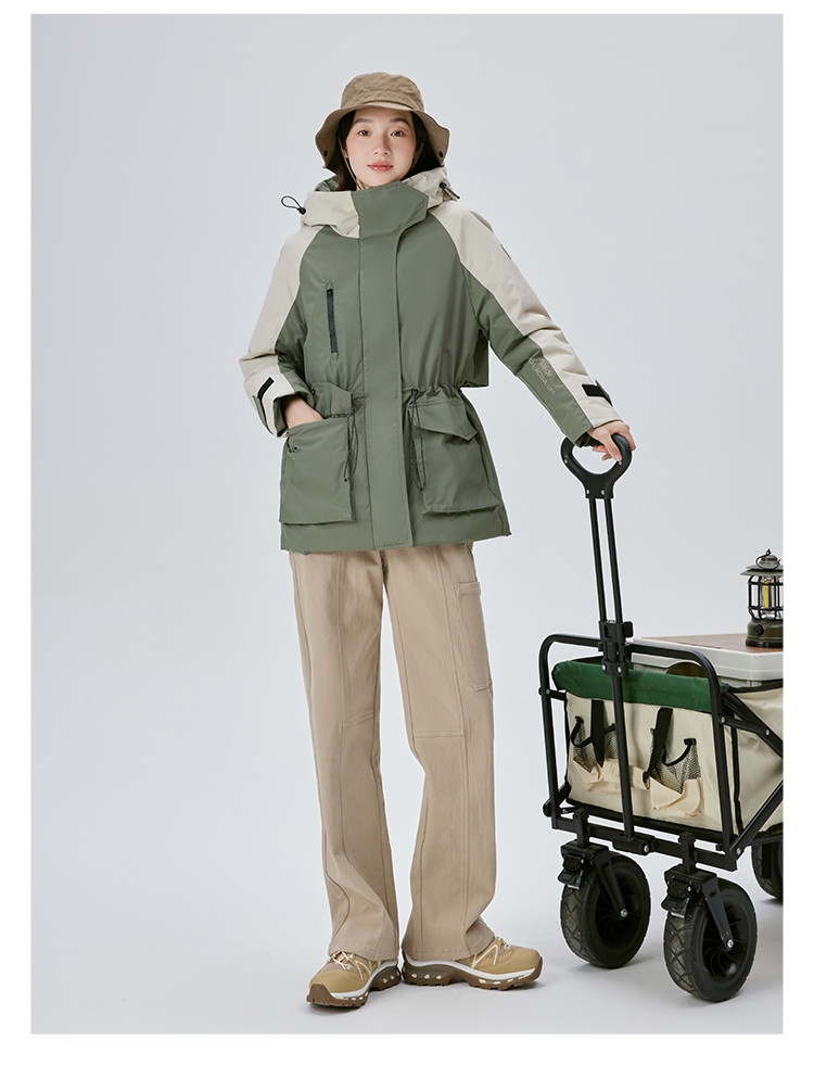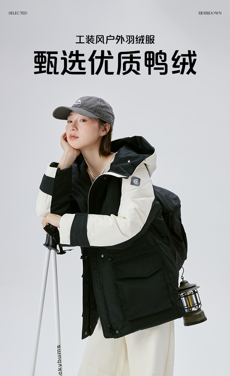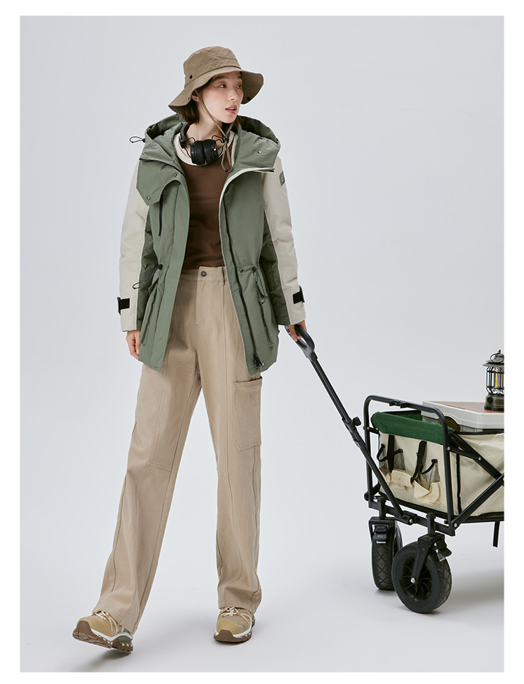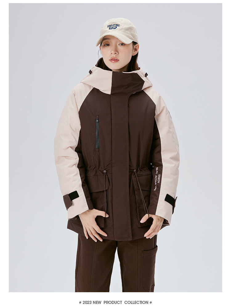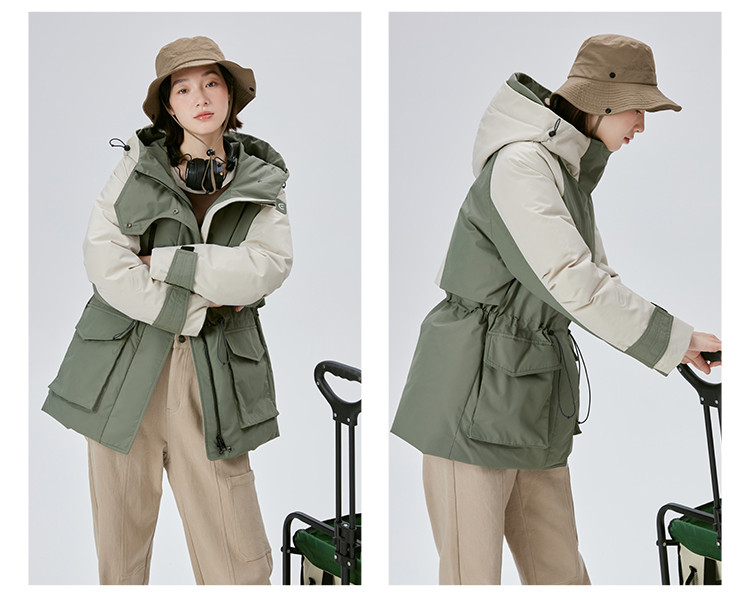 工装风户外羽绒服女冬季时尚撞色连帽宽松工装外套派克服 126294